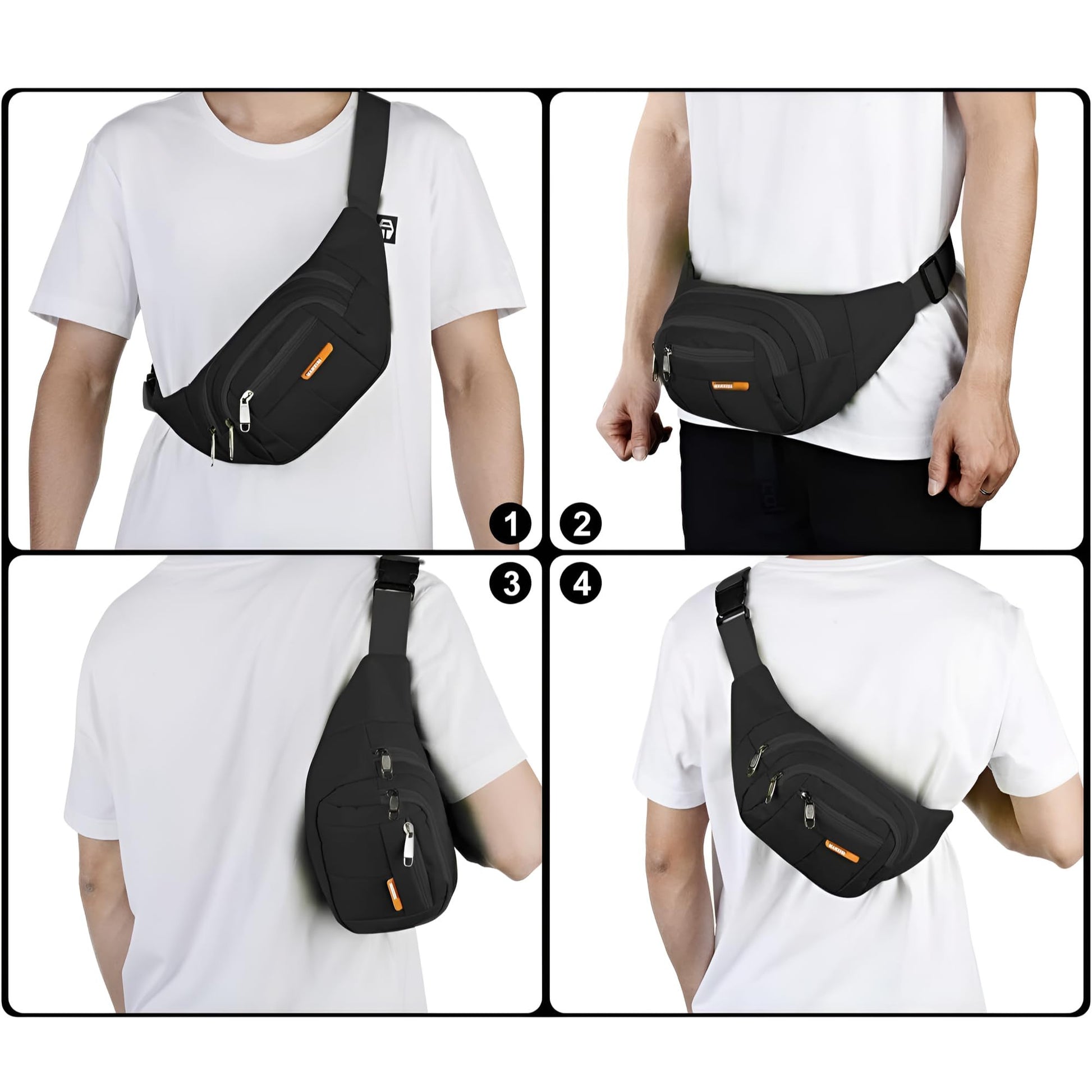 JacobsParts Fanny Pack Large Capacity Water Resistant Travel Waist Bag Men Women Cross Body Shoulder Sling Pouch Running Belt for Travel Running Hiking Jogging Sports (Black)