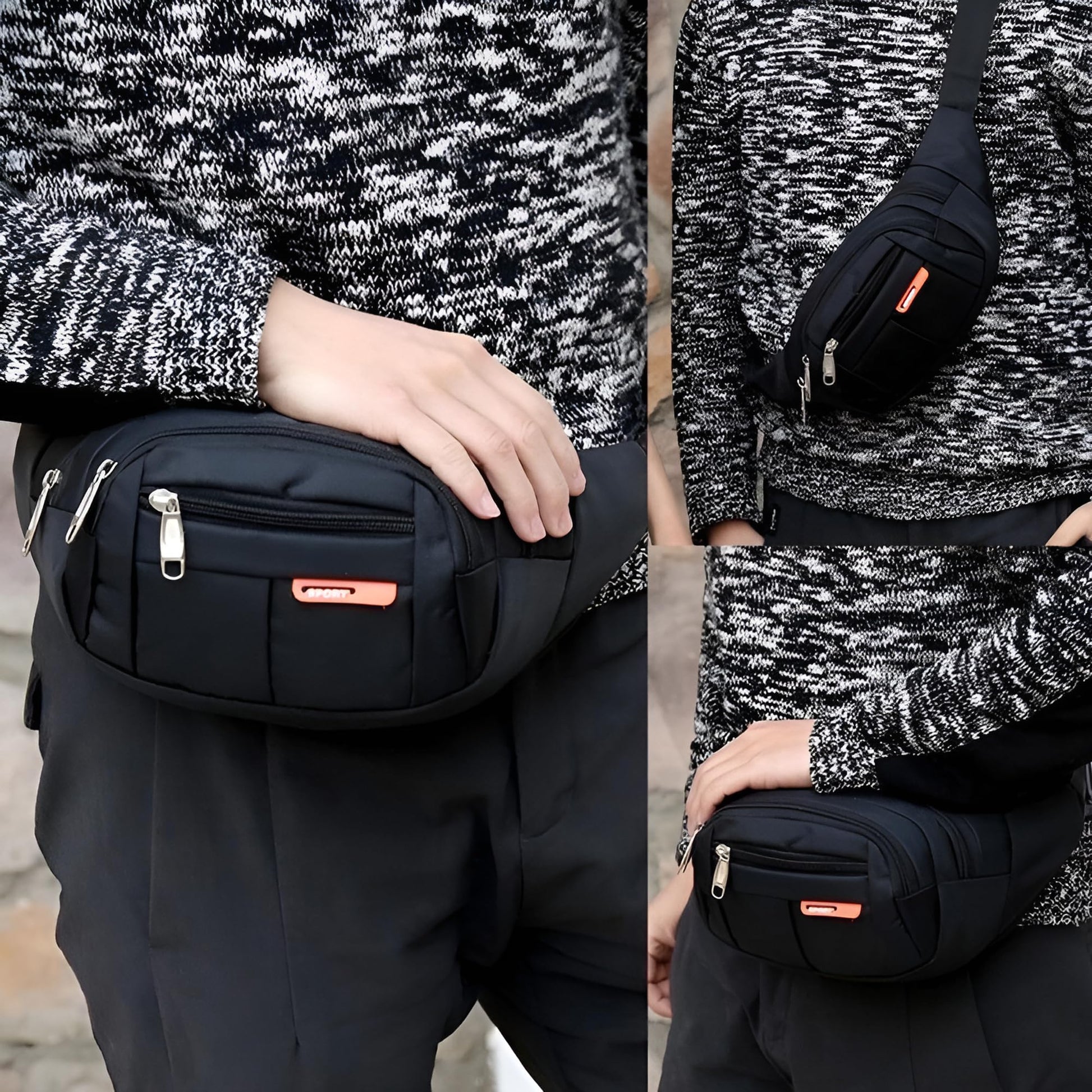 This Large Crossbody Fanny Pack offers convenience and style for sports enthusiasts, festival-goers, travelers, and casual users. Made from top-quality fabrics, this waist pack offers a soft, lightweight, and breathable wearing experience. It has a durable and wear-resistant utility belt for everyday use. The pack features a unisex, solid-colored design with a secure zipper closure. It comes with a robust webbing belt loop that is significantly stronger and more durable than regular belts. This pack offers three zippered compartments, providing ample space to carry all types of phones and portable essentials securely. The curved design fits waist contours perfectly, ensuring a comfortable fit. The waist belt is fully adjustable to accommodate a wide range of waist sizes. The pack is stain-resistant, and it maintains its appearance and durability in different conditions. For maintenance, you can hand wash, wipe clean, or machine wash in cold water, but avoid bleaching.