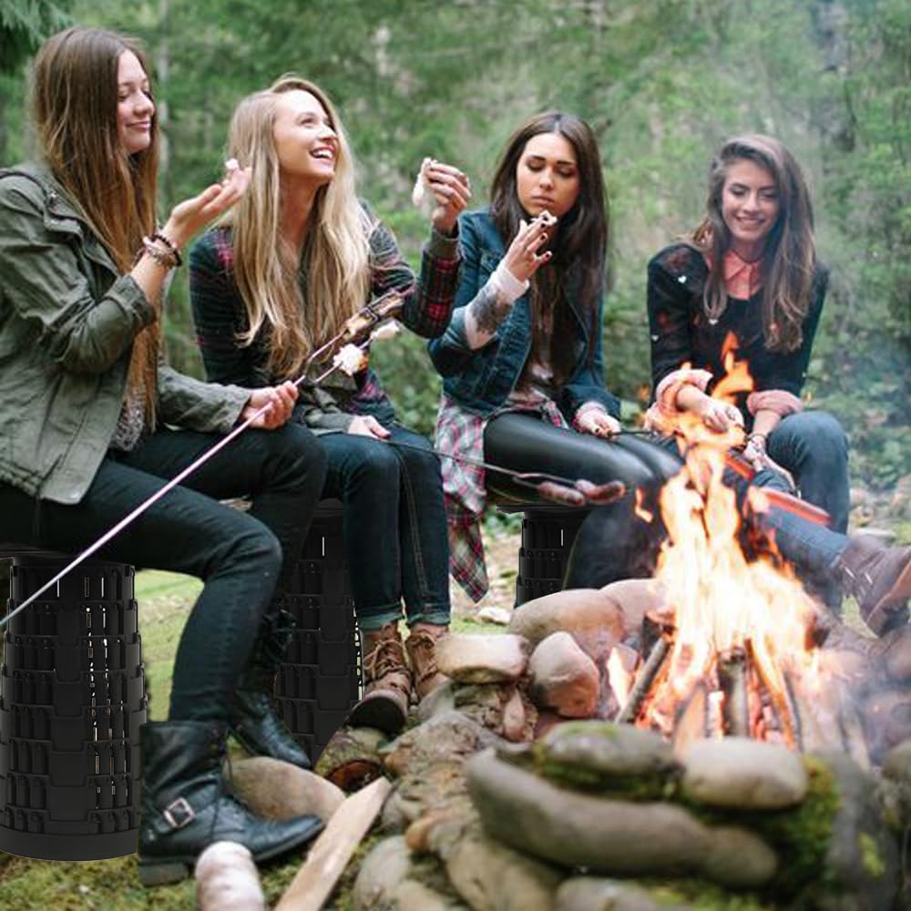 - 【FOLDABLE, RETRACTABLE】Folding camping stool easily opens and closes in just seconds and locks into place with a gentle swivel for safety and stability. Height can be freely adjusted between approximately 2.4 inches and 17.7 inches, suitable for adults weighing less than 500 pounds, perfect for gifts for family, friends and relatives.
