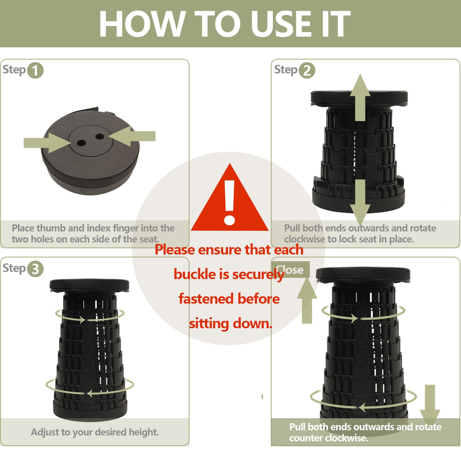 - 【PREVENT SELF-OPENING】When the folding stool is stowed away, the snap designed on the stool cap will work to prevent the stool from opening on its own. The non-slip base ensures the stability of this foldable stool, providing you with a safe and comfortable sitting position.