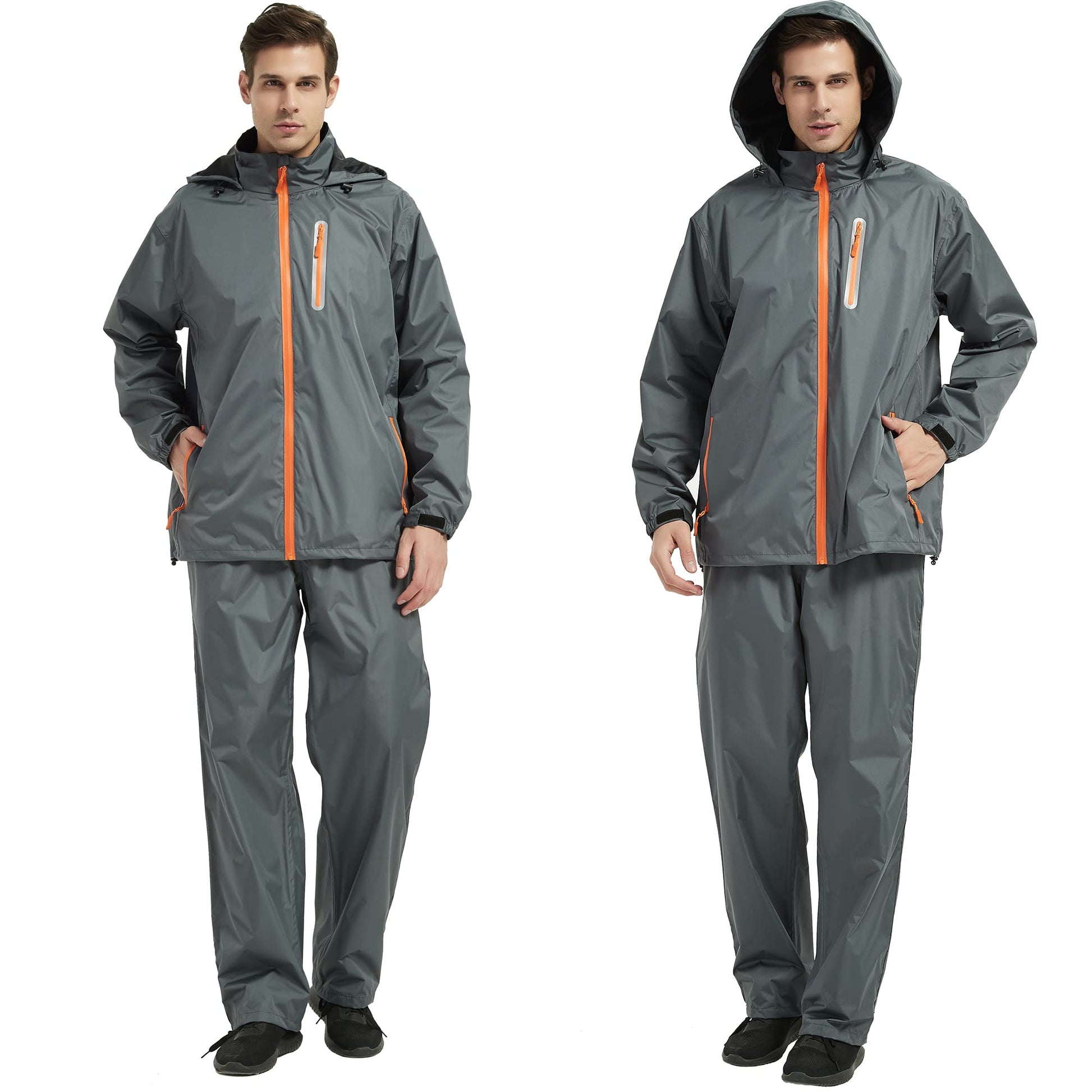 JAEZZIY Rain Suits for Men Women Waterproof Lightweight Hooded Breathable Rain Gear Raincoat for Fishing Hiking Cycling (Grey L)