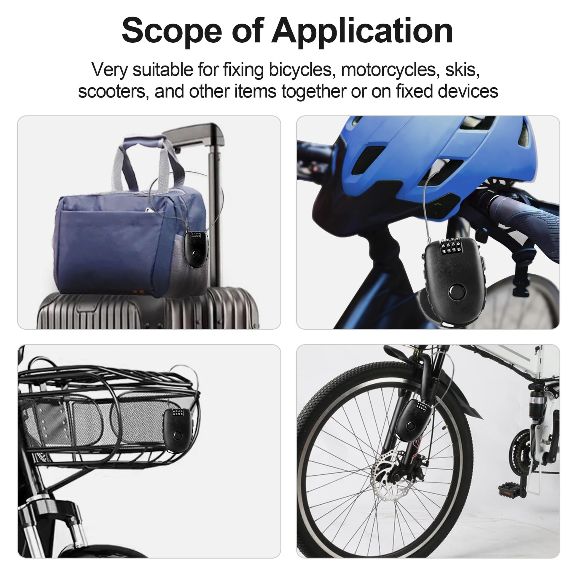 JAGASOL Motorcycle Helmet Lock, 4 Digit Combination 27.5 Inch Retractable Cable Lock for Snowboard, Bike Luggage Backpack Scooter Suitcase Ski, Small Multi-Function Secure Lock for Travel, Black