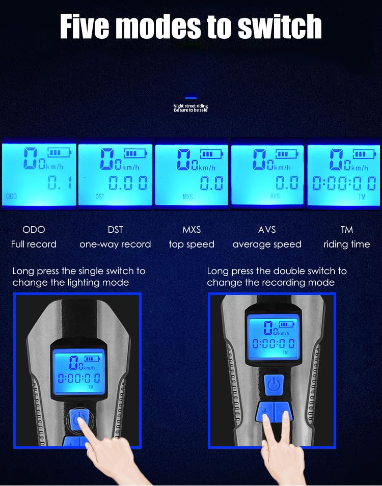 - [Superior Brightness]: Experience our bike headlight rechargeable have the power Designed with 5 modes Adjustment, and bicycle headlight ensures optimal visibility for your night rides. Whether you're navigating city streets or mountain trails, our bike headlight will light your way.