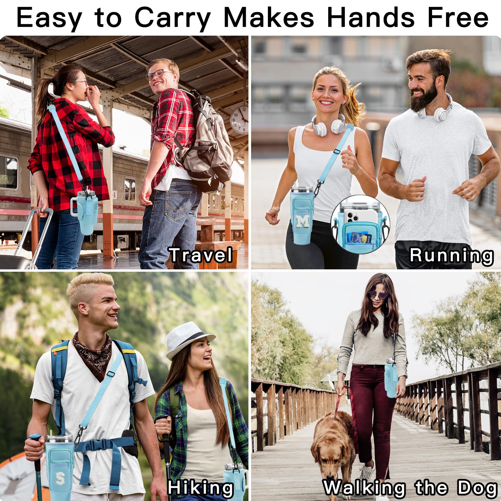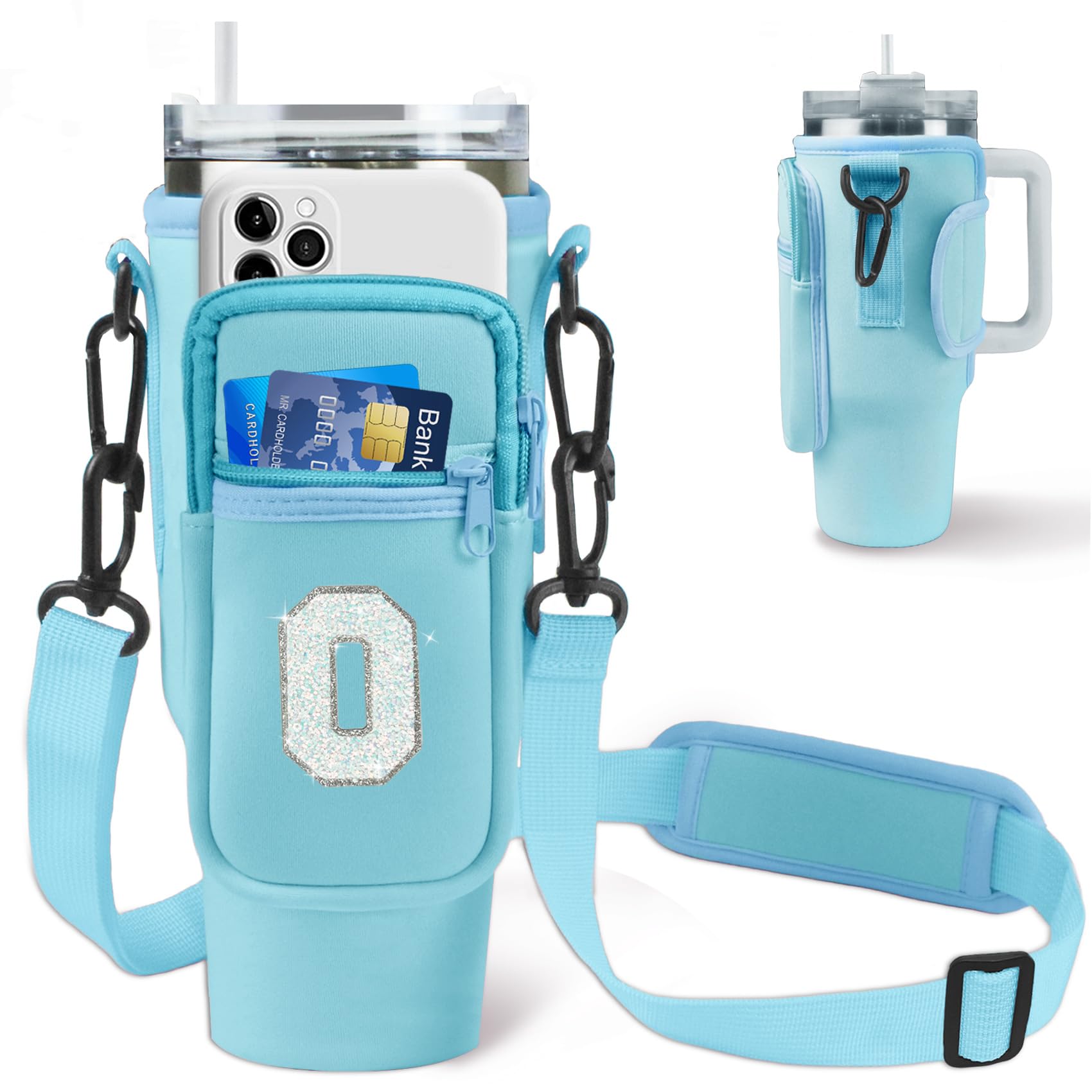 - ❤️【Perfect for Stanley 40 oz Tumbler with Handle】Initial letter water bottle holder bag with strap is specially designed for stanley 40oz tumbler. Glitter letter patch, phone pocket design, fine stitching and snug fit, making your water bottle bag more stylish, unique,and better protecting your tumbler.(Note:Due to long term transportation, There is maybe slight odor, don't worry, the odor will dissipate in a few hours in a ventilated place .)
