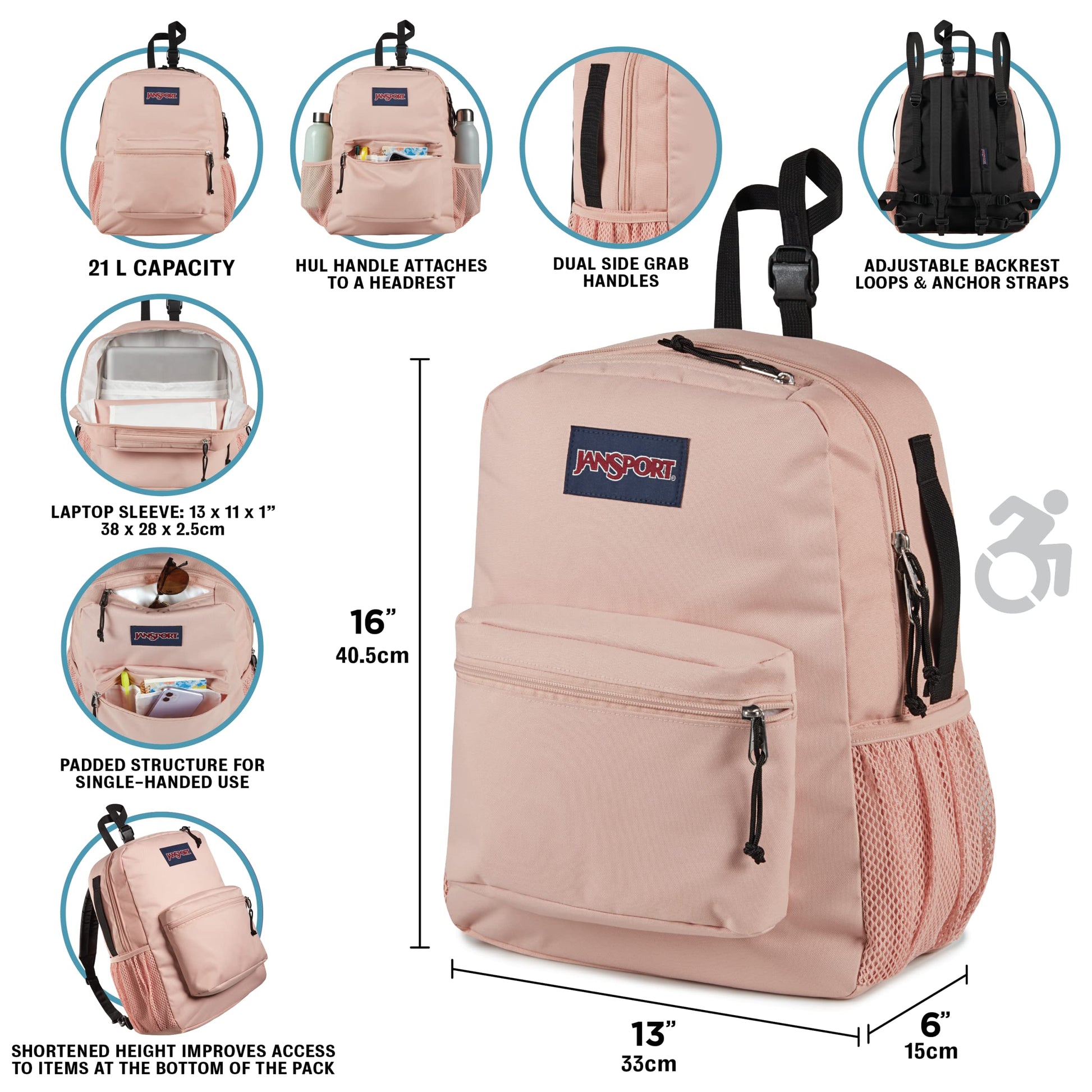 The JanSport Central Adaptive Backpack is the perfect solution for enhanced mobility and effortless organization. Measuring 16 x 13 x 6 inches (40 x 32 x 14 cm) and offering a spacious 1281 cu in (21 L) capacity, this lightweight bag at just 1 lb 2 oz (0.5 kg) is designed to integrate seamlessly with wheelchairs and walkers, ensuring smooth transport and easy access for a variety of mobility devices. Crafted with iconic JanSport design, this adaptive pack features tuck-away shoulder straps and hassle-free adjustment loops, combining timeless style with practical functionality. Customize your comfort and security with adjustable backrest loops and anchor straps, providing a tailored fit that enhances your adventures. Stay organized with the spacious main compartment, which includes interior pockets to keep your essentials tidy and easily accessible. The adjustable top handle attaches securely to your headrest using a slide-release buckle, ensuring versatile and secure handling. Ideal for those seeking both fashion and function, the JanSport Central Adaptive Accessory Bag offers a blend of style, comfort, and practicality, making it an essential companion for daily use and travel.