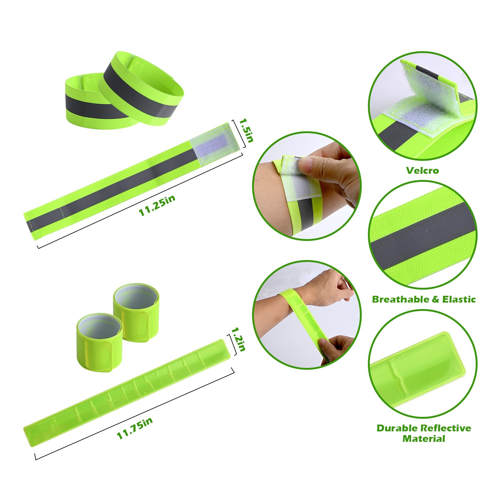 - šćHigh Quality Materialć5 Pcs reflective running set, made of high quality fabric and super bright reflective strips. Wear-resistant construction, comfortable to wear, not easy to tear or fade, can be worn and washed again and again.