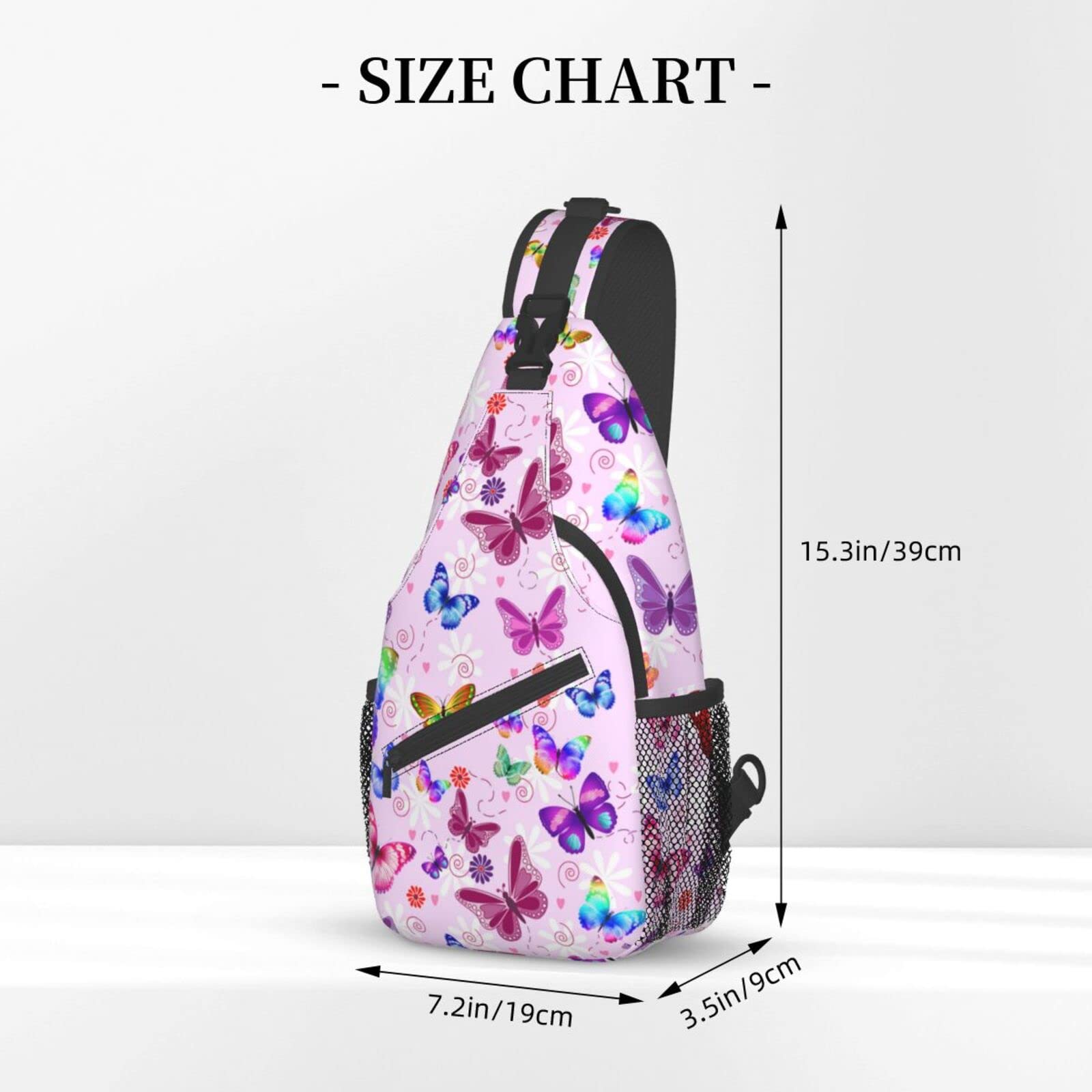 - Dimension:15.3 X 7.5 X 3.5 Inch. Adjustable Non-Slip Shoulder Strap, 2 Mesh Bags On Each Side. You Can Wear This Sling Bag Over Either Shoulder Comfortably, Or Across The Chest. Adjustable Shoulder Strap, Will To Provide You With The Best Comfort.