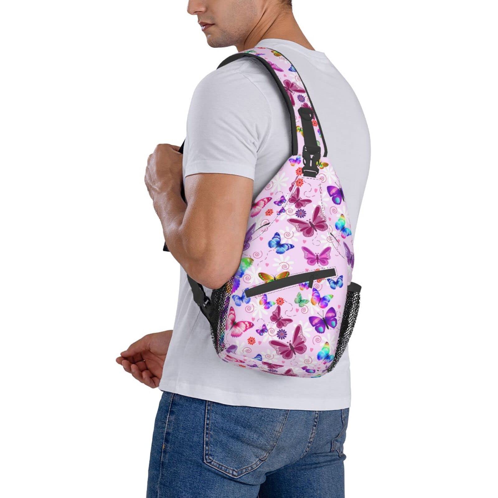 JDEIFKF Butterflies Sling Bag Travel Crossbody Bag Chest Daypack Hiking Shoulder Bag For Men Women