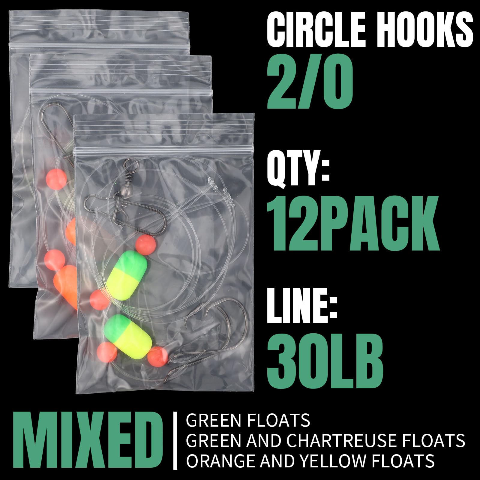 - Suitable Dimensions for an Ideal Catch: our saltwater rigs are designed with suitable sizes for the ideal fishing experience; Featuring strong 30lb camouflage monofilament leaders, 0.9'' swivels, and reliable 2/0 circle hooks, we ensure a robust setup; With 1.06'' Duo lock snaps and 3/4" floats, we provide an effective rig that will boost your fishing success rate
