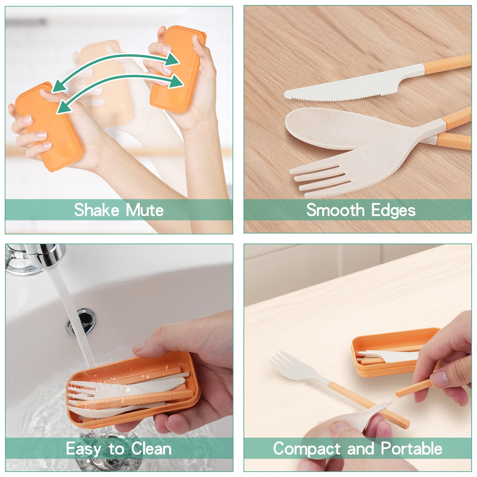 - 【Durable and Reliable】This reusable utensils set with case contains plastic material, durable and wear-resistant and drop-resistant, the travel cutlery folding interface is tight, it is not easy to suddenly disconnect when in use, and placed in the bag will not be shaken by walking around and produce shaking sound, really do bring convenience to life!