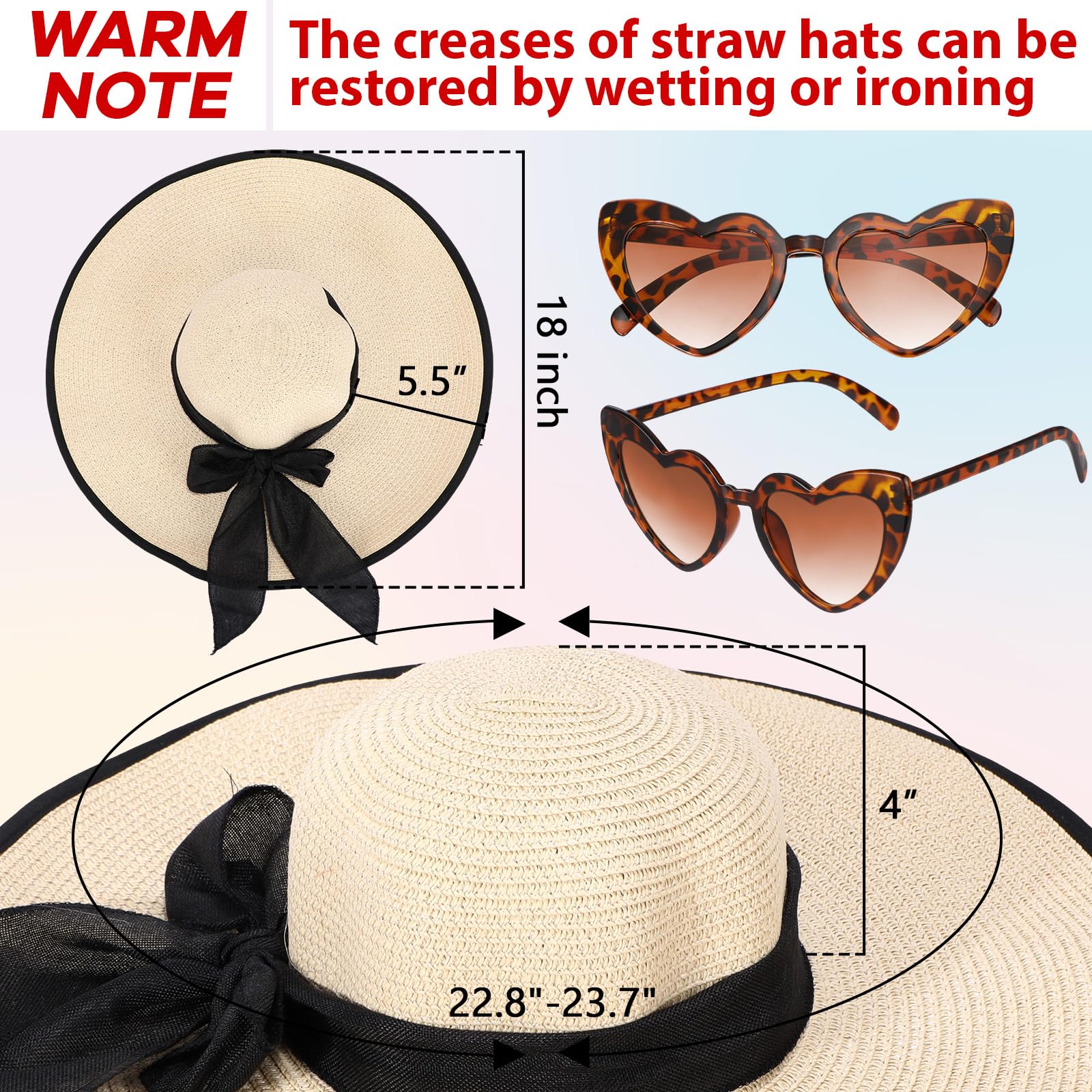 - Applicable for Many Occasions: our heart glasses and straw hat for women are functional, ideal for being applied for camping, hiking, traveling, walking and other activities, also suitable for many parties, like BBQ, pool parties, summer vacations, seasides, gardening works, outdoor birthday parties and so on, to enjoy your summer