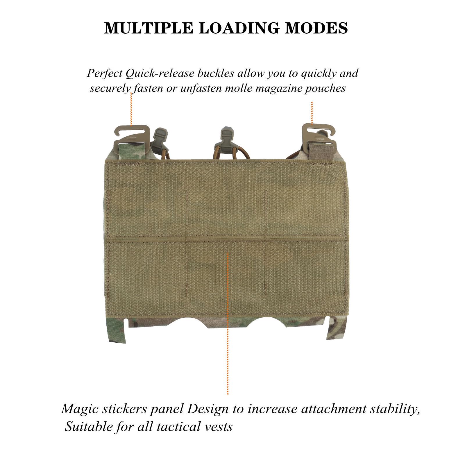 - Multiple loading modes:1. Perfect Quick-release buckles allow you to quickly and securely fasten or unfasten molle magazine pouches ,2. magic stickers panel Design to increase attachment stability, Suitable for all tactical vests, backpacks and tactical belts, easy to install and detach. wide range of applicability