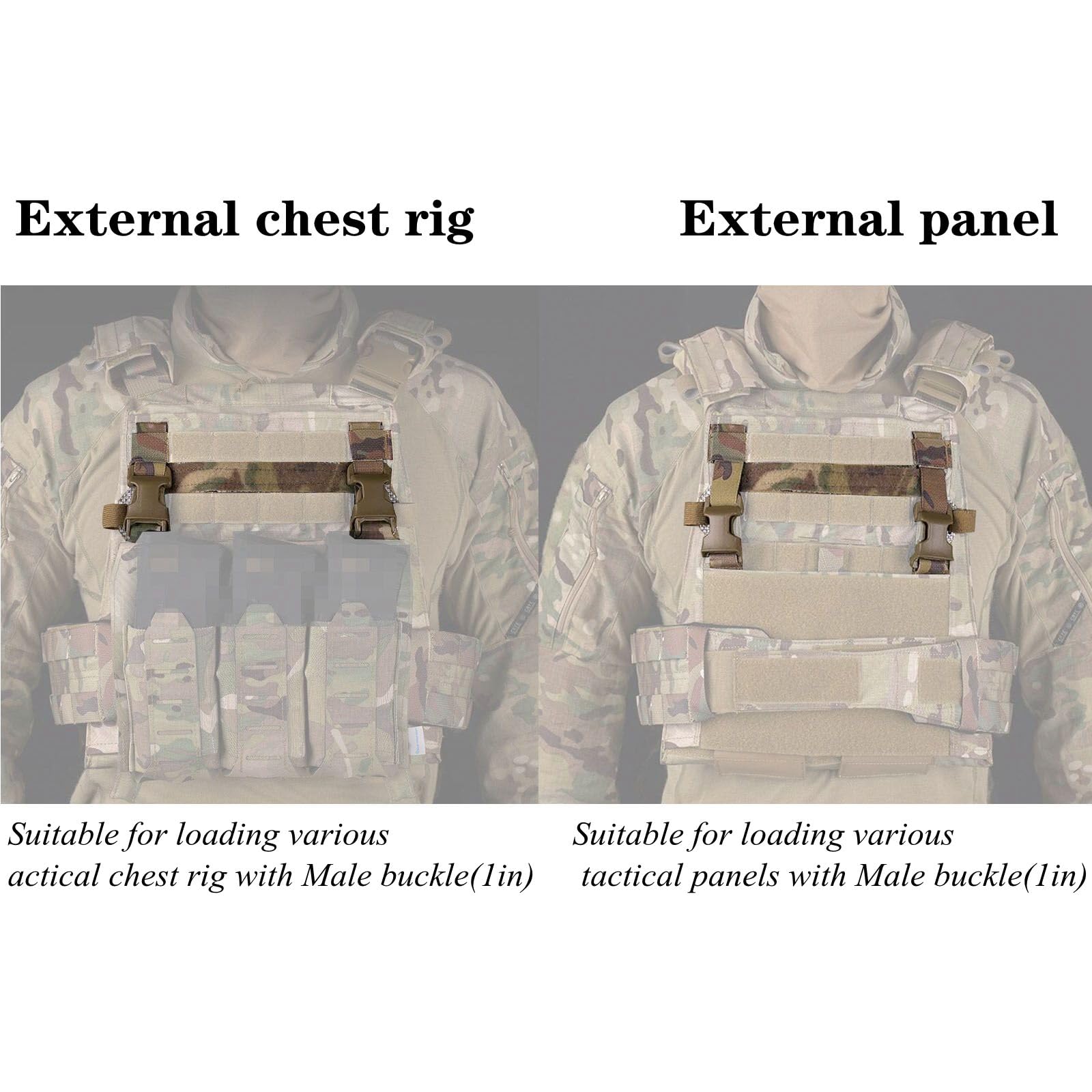 - Tactical MOLLE Vest Quick Release Buckle Connecting adapter can be quickly disassembled and connect, Suitable for AVS tactical vests, For most brands on the market tactical chest hangers (You can also remove the female buckle and use the G-buckle to connect it)