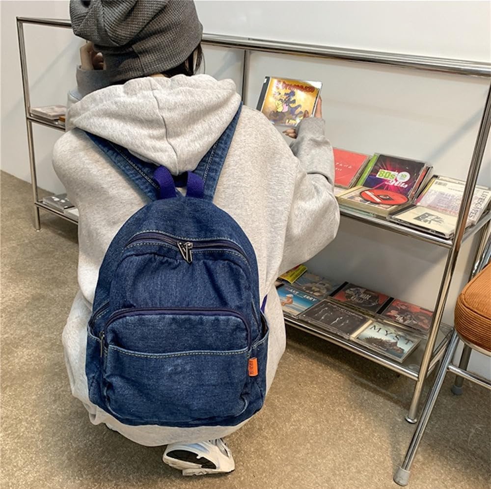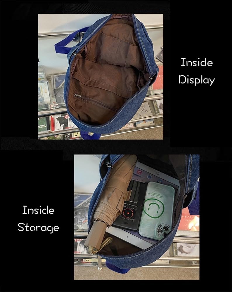 - Small Denim Backpack: Size 9.84inch(L)*3.94inch(W)*11.81inch(H)/25*10*30cm.