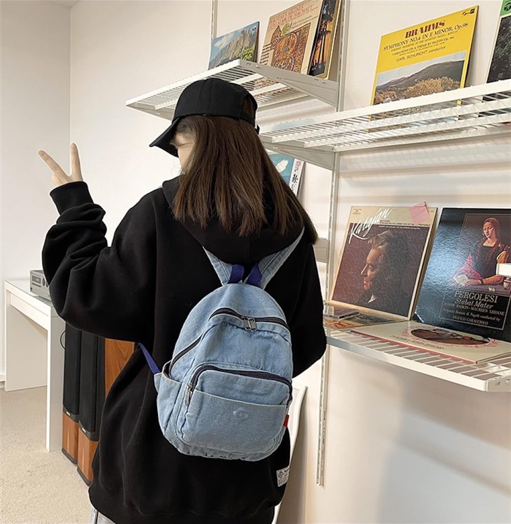 JHTPSLR Small Denim Backpack for Women Vintage Aesthetic Mini Denim Backpack Canvas Backpack Casual Daypack (Light Blue)