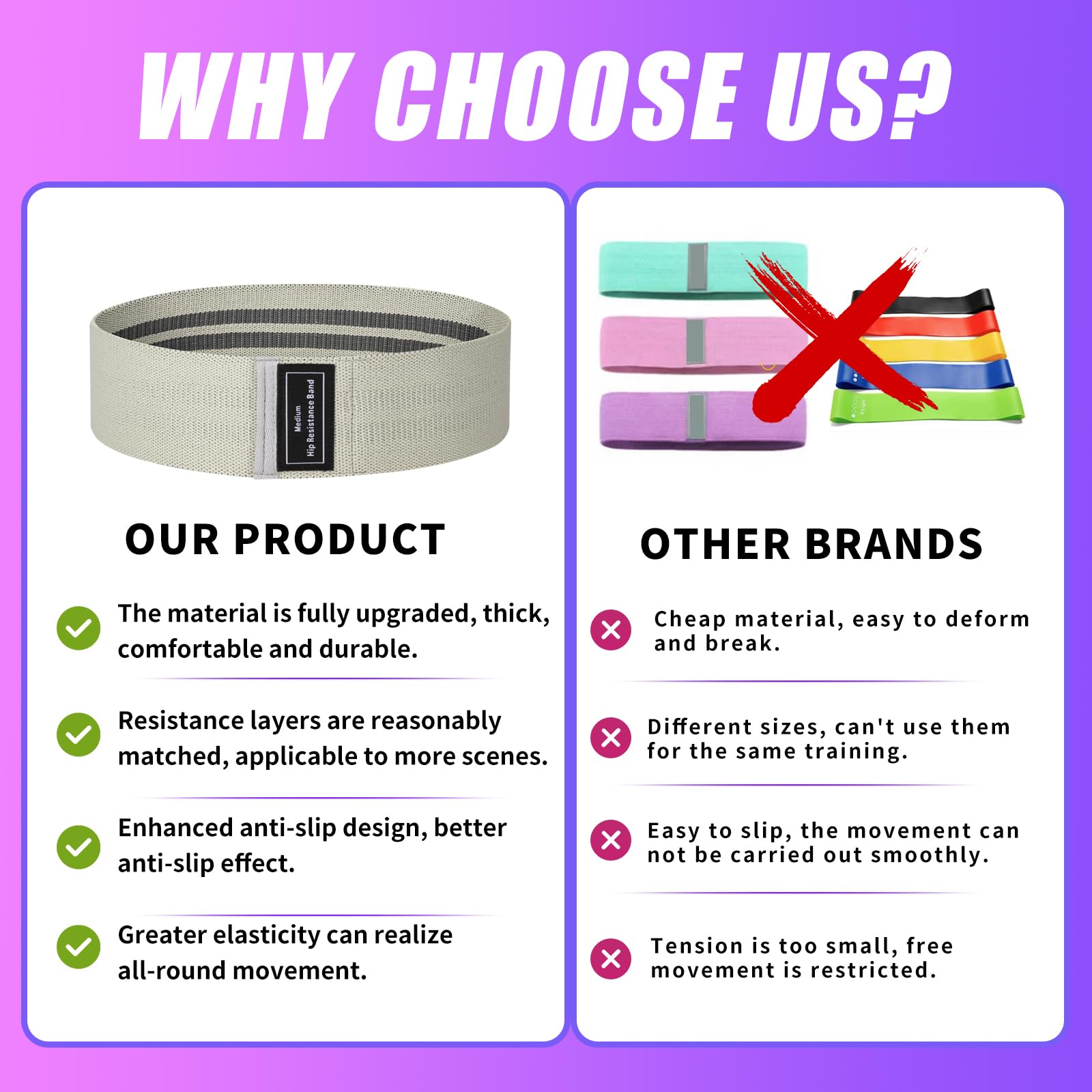 - 【Multiple Resistance Levels】The same size squat bands with different resistance can meet the different stages of training needs of men and women. Different colour sets, green band, purple band, black band, grey band, pink band. Segmented double-layer digital stretching bands are suitable for dance training.