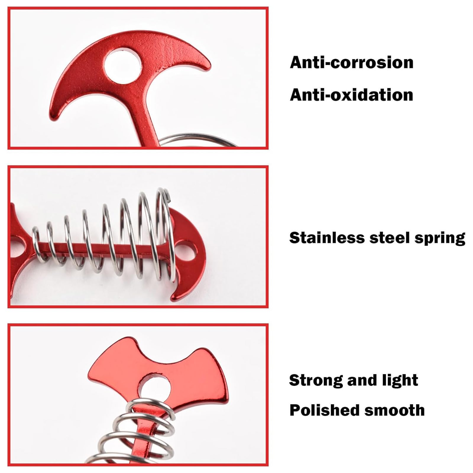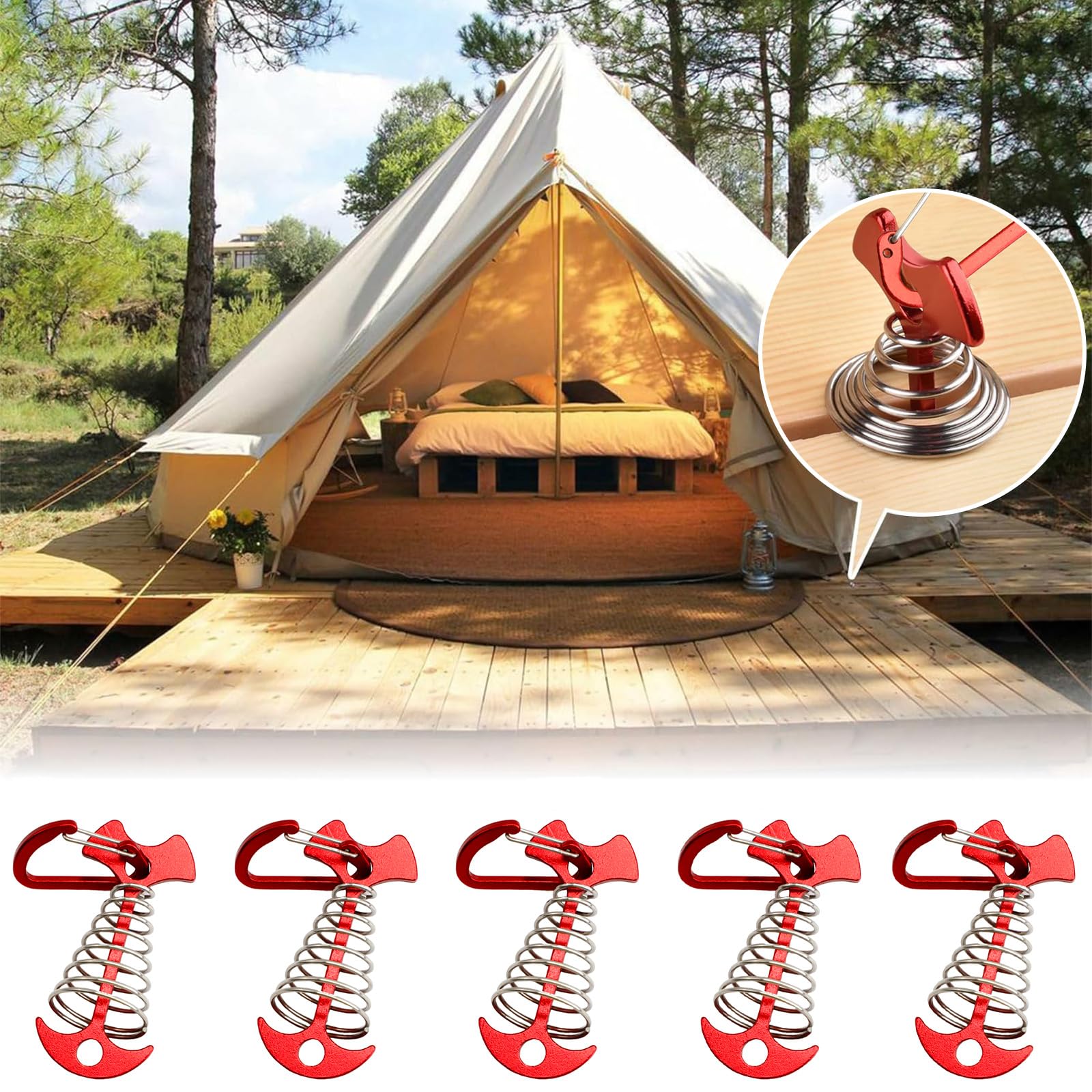 - Secure Spring Buckle: Tent stake deck anchor pegs are equipped with a spring buckle, adjustable anchor deck pegs provide a safe and secure way to hold the tent stake in place.