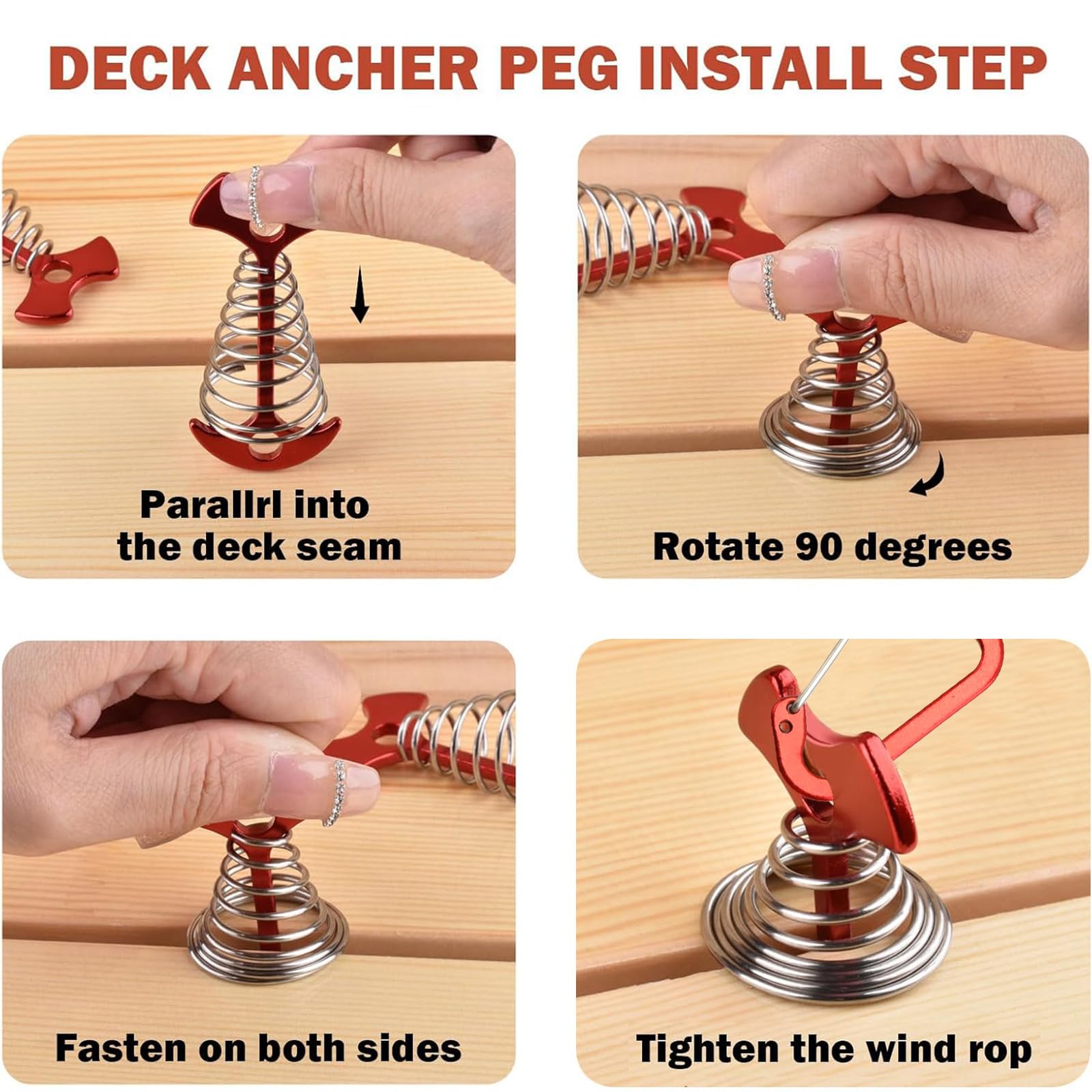 1. Deck anchor pegs have strong windproof effect, able to withstand strong wind and heavy rain.