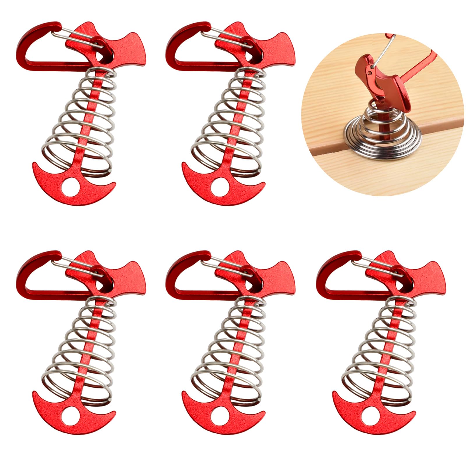 JINGIHE 5 PCS Fishbone Deck Anchor Pegs, Red Deck Furniture Anchors, Deck peg with Spring Buckle, 2.9 Inch x 1.4 Inch Adjustable Anchor Deck pegs, Tent Decks Anchors for Camping Hiking Supplies