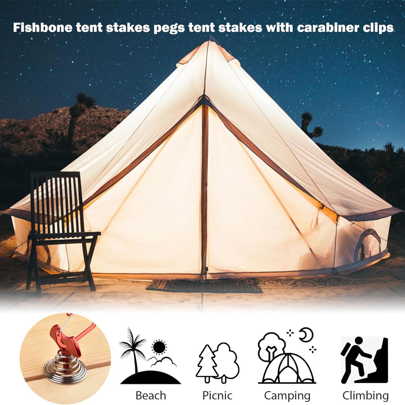 - Premium Material: Fishbone tent stakes is made of aluminum alloy buckle and stainless steel, strong and resistant to deformation, deck anchor durable for windy day and will not fall off.