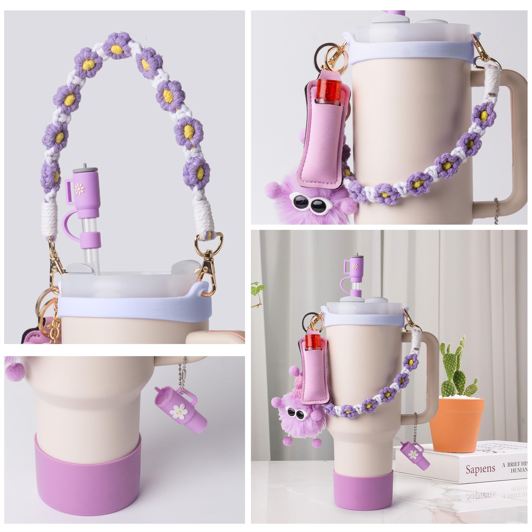 - Well Packaged: These Stanley accessories are well packaged in a box, 1PCS Cute Braided Water Bottle Strap and 1PCS Elastic Cup Ring, 1PCS Water bottle Protective Boot, 1PCS Straw Cap and Cup Handle Charms, 1PCS Lipstick Carrier Holder, 1PCS pompom ball Key Chain hanger. Designed for Stanley Cup Accessories 30/40 oz.