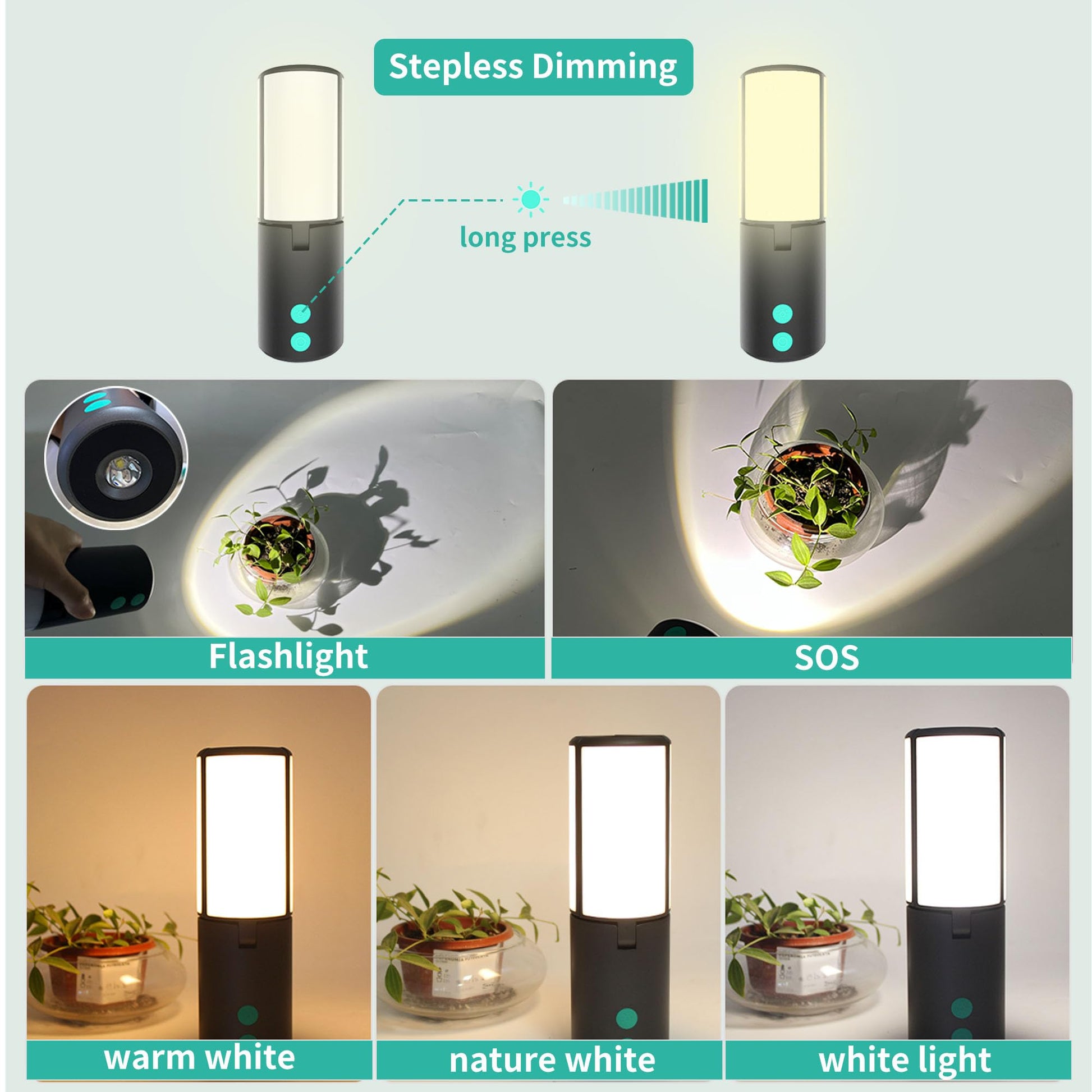 - 【Stepless Dimmable & 5 Light Modes】: 5 light modes (warm white, white light, mixed color, flashlight, flashing). The brightness can be adjusted 0-100% at will from 60LM to 4000LM by long-pressing the camping lights stepless dimmable button. It is versatile for both indoor and outdoor use, serving as night light or reading light indoors and for fishing and hiking outdoors, nice camping gift to your friends.