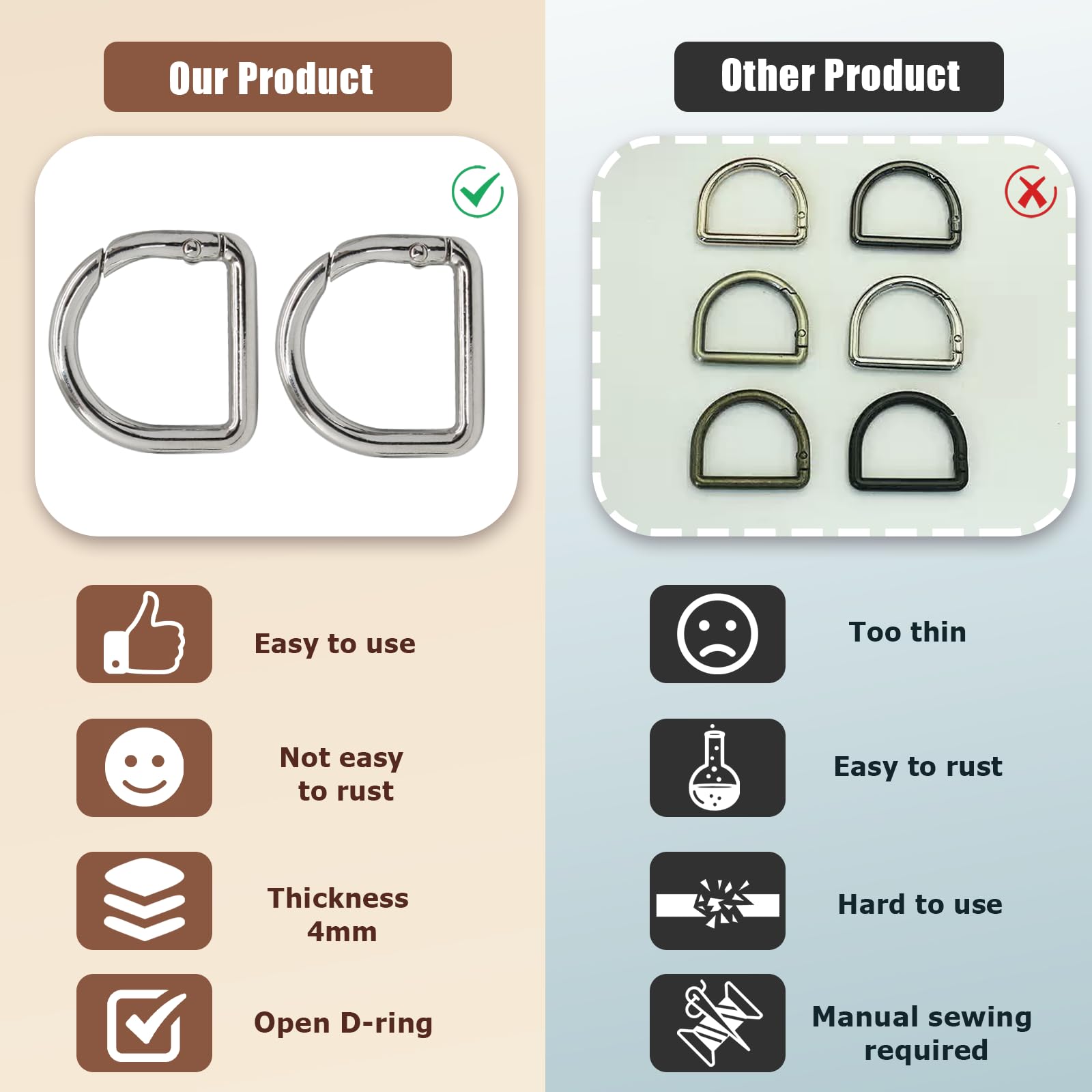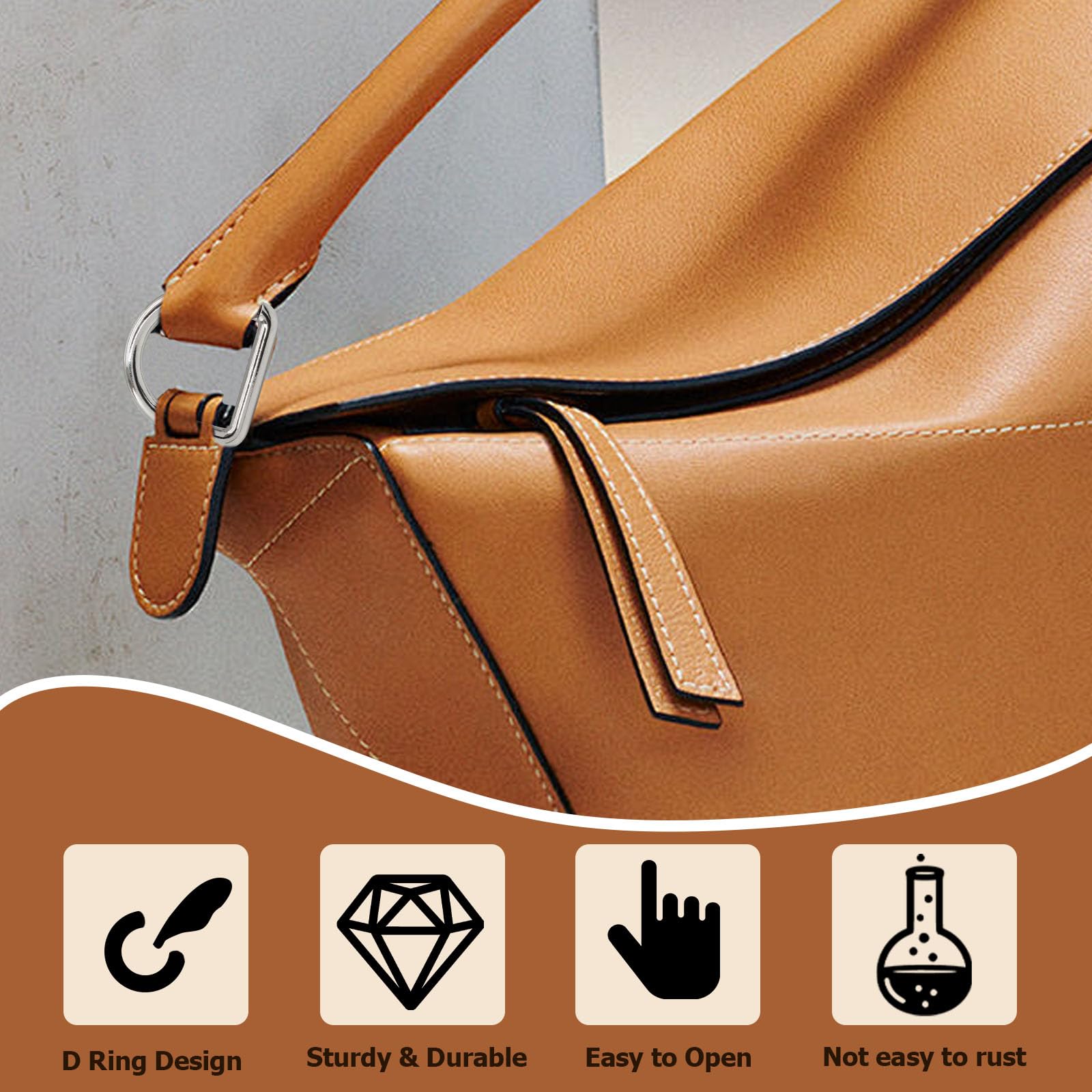 - Durable Metal Construction: Made from sturdy metal, these D rings and carabiner clips are designed to withstand daily wear and tear, making them reliable for securing keys, purses, and other essentials.