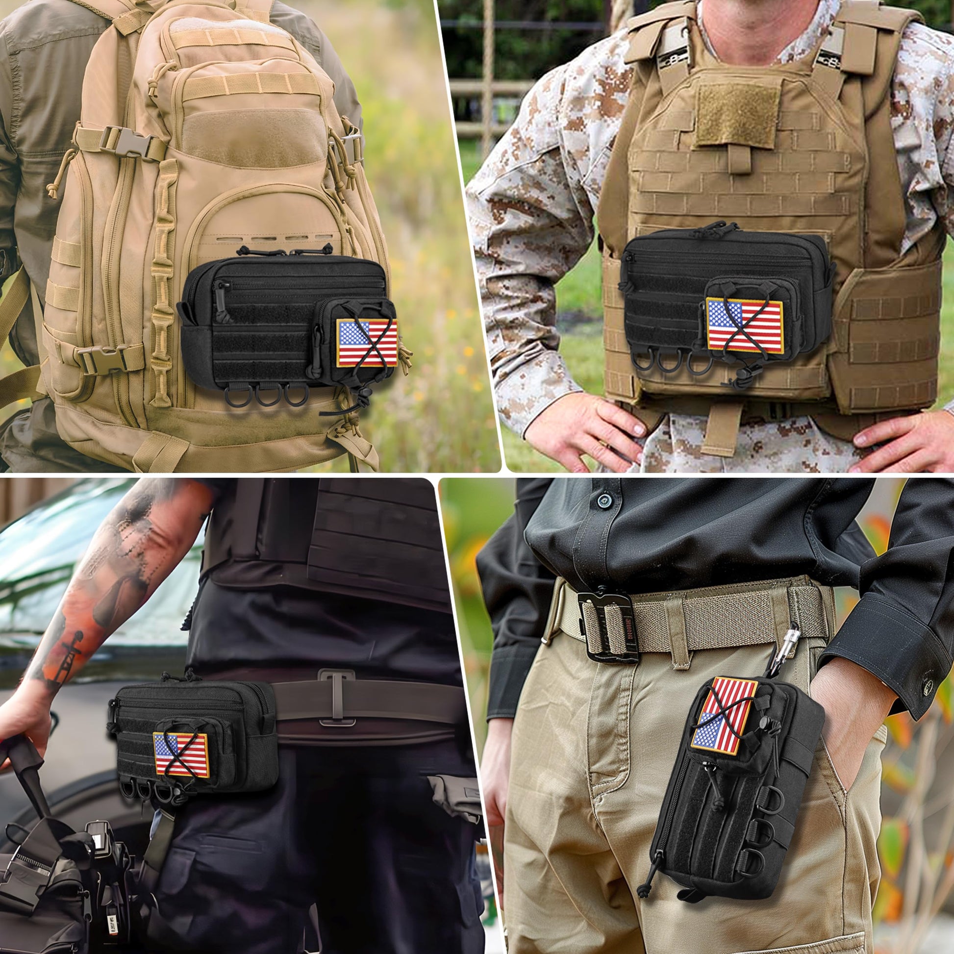 JIPIMON Tactical Molle Pouch, Water-Resistant Admin Pouch with US Flag Patch, Utility Molle Pouches for Tactical Vest Backpack (Black)