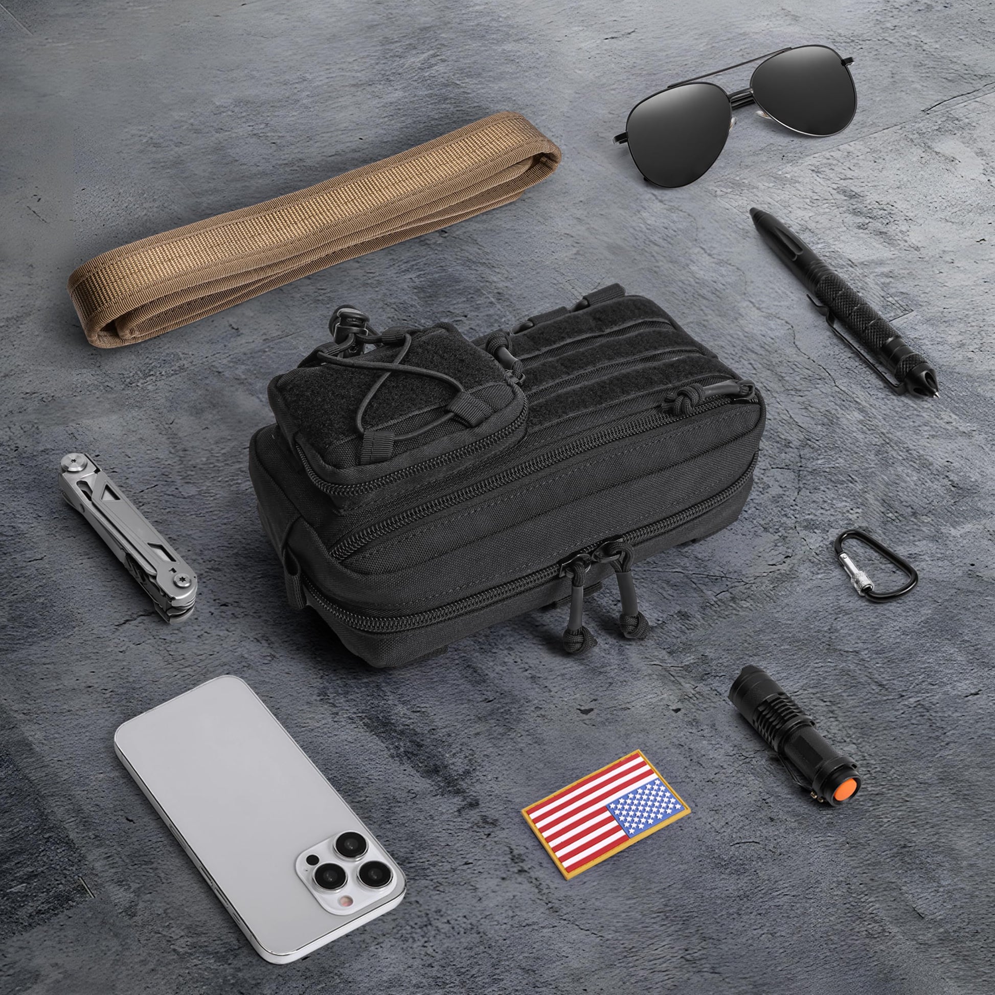 - TOUGH QUALITY: Tactical pouch is made of 1000D nylon, durable and water-resistant, offering long-term durability and keeping your gears stay safe and dry. Sturdy double zippers for the top to the sides quickly allow it to open and easily see what you have.