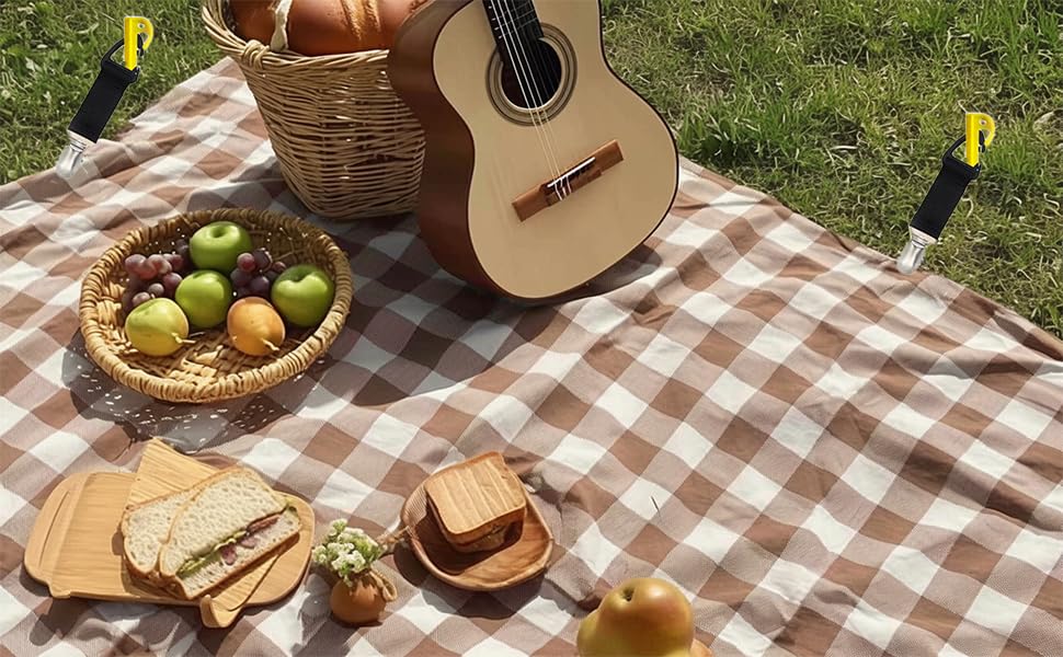 - Easy to use: First, use clips to secure the four corners of the beach blank or picnic mat, then secure the picnic mat clips with plastic stakes. Enjoy your picnics and beach trips without worrying about your blanket getting lost or fold.