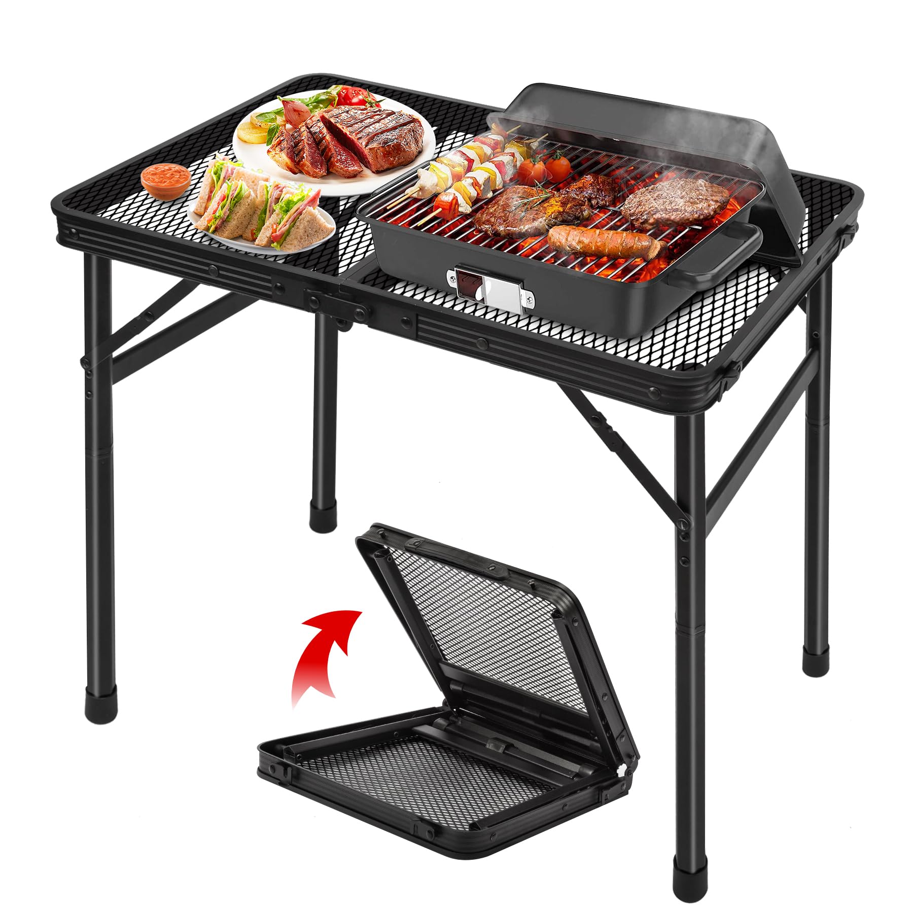 jkwokback 3ft x 2ft Grill Table Portable Camping Table and Grill Table Camping Table Portable Folding Table Outdoor Picnic Table,Height Adjustable Collapsible Table with Mesh Desktop