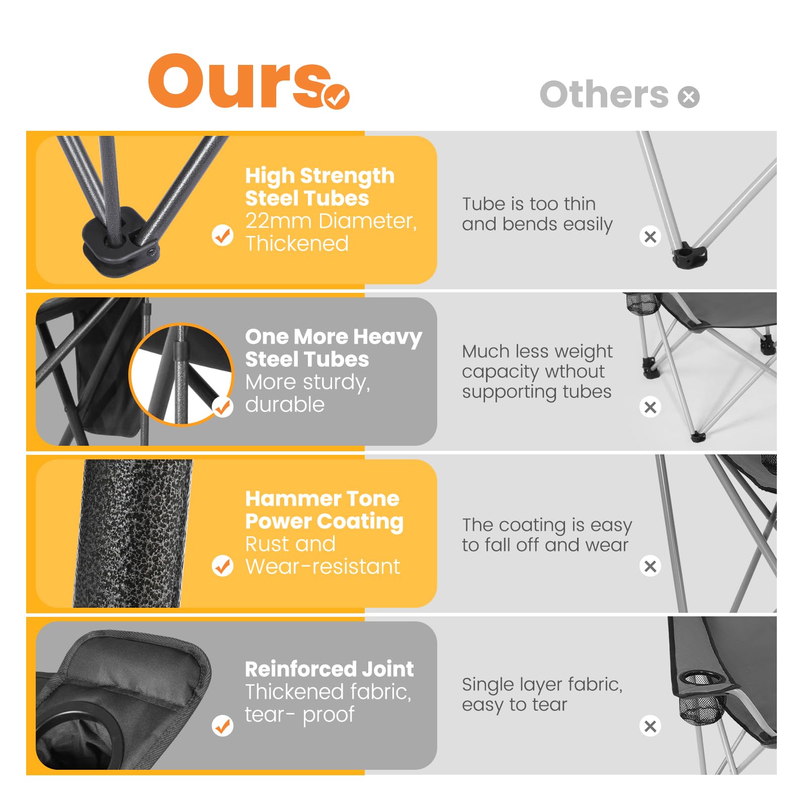 - Heavy Duty Camping Chair - Join Nature heavy duty camping chair features high strength steel tubes (22mm) capable of supporting weights of up to 800 pounds (362 kilograms), providing you with the durability and security.
