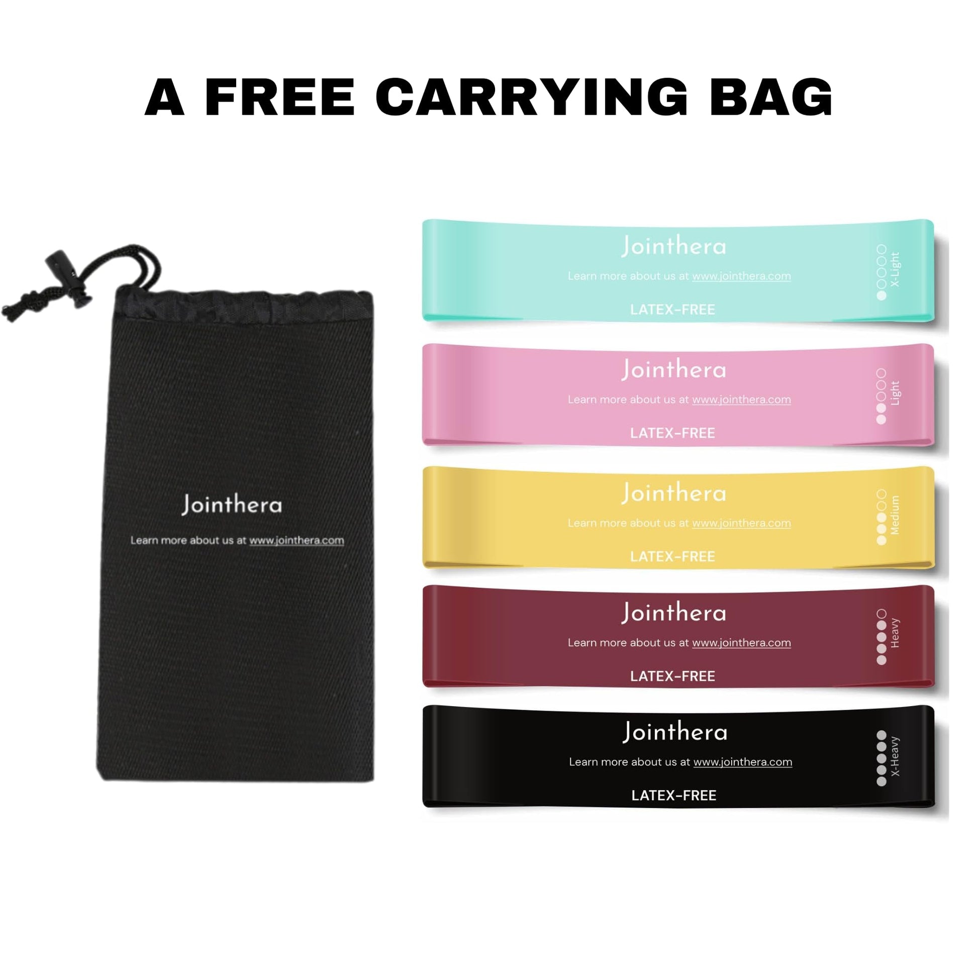 JOINTHERA Premium Latex Free Resistance Bands for Working Out - Set of 5 + Carrying Bag | Non Latex Mini Loop Workout Bands Resistance for Women and Men | Physical Therapy, Legs Exercise and Pilates