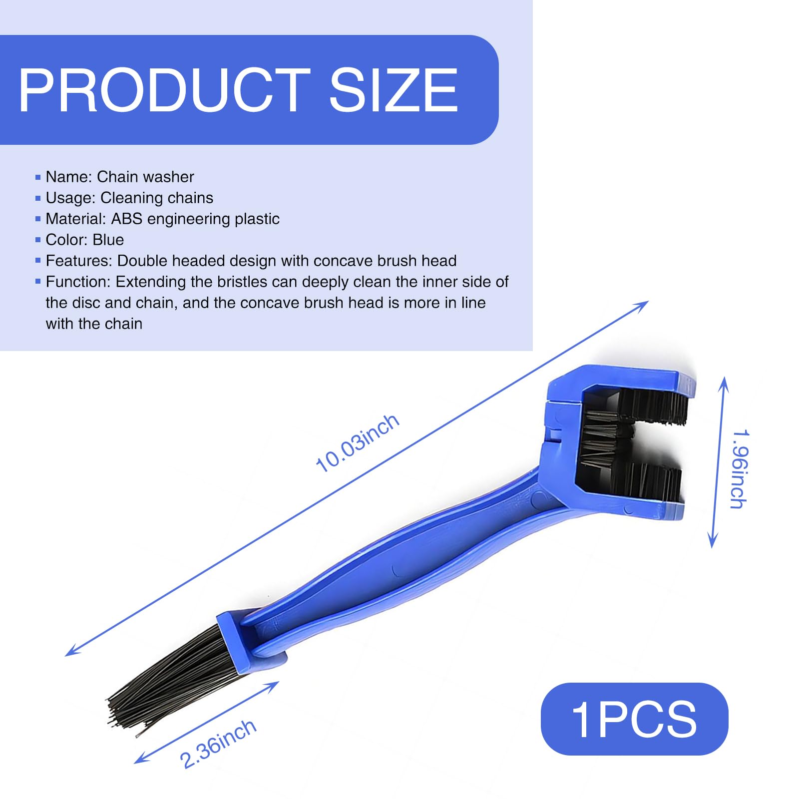 Details: jokormo 1 PC Motorcycle Chain Cleaning Brush, 10" Double-headed Design Snug Fit Chain Details Dust Brush, Bicycle Chainring Save Effort Washer, Universal for Motorcycle Bike Cleaning Tool (Blue)