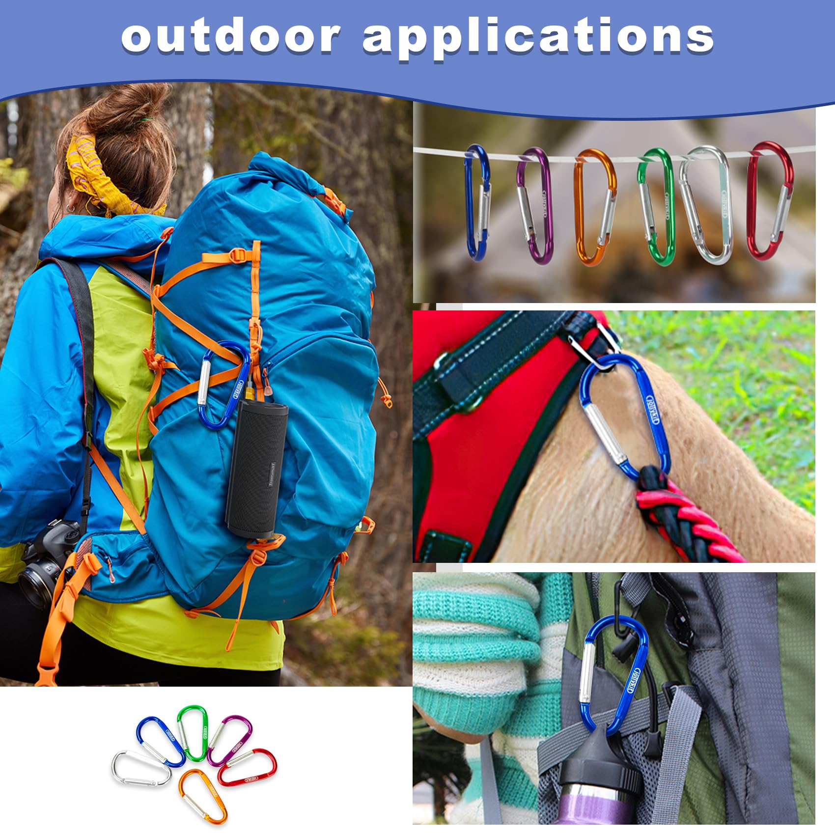 - [Wide range applications] The carabiners can be used in so many scenarios. For camping, hiking , keychain and beautiful accessories in your life.