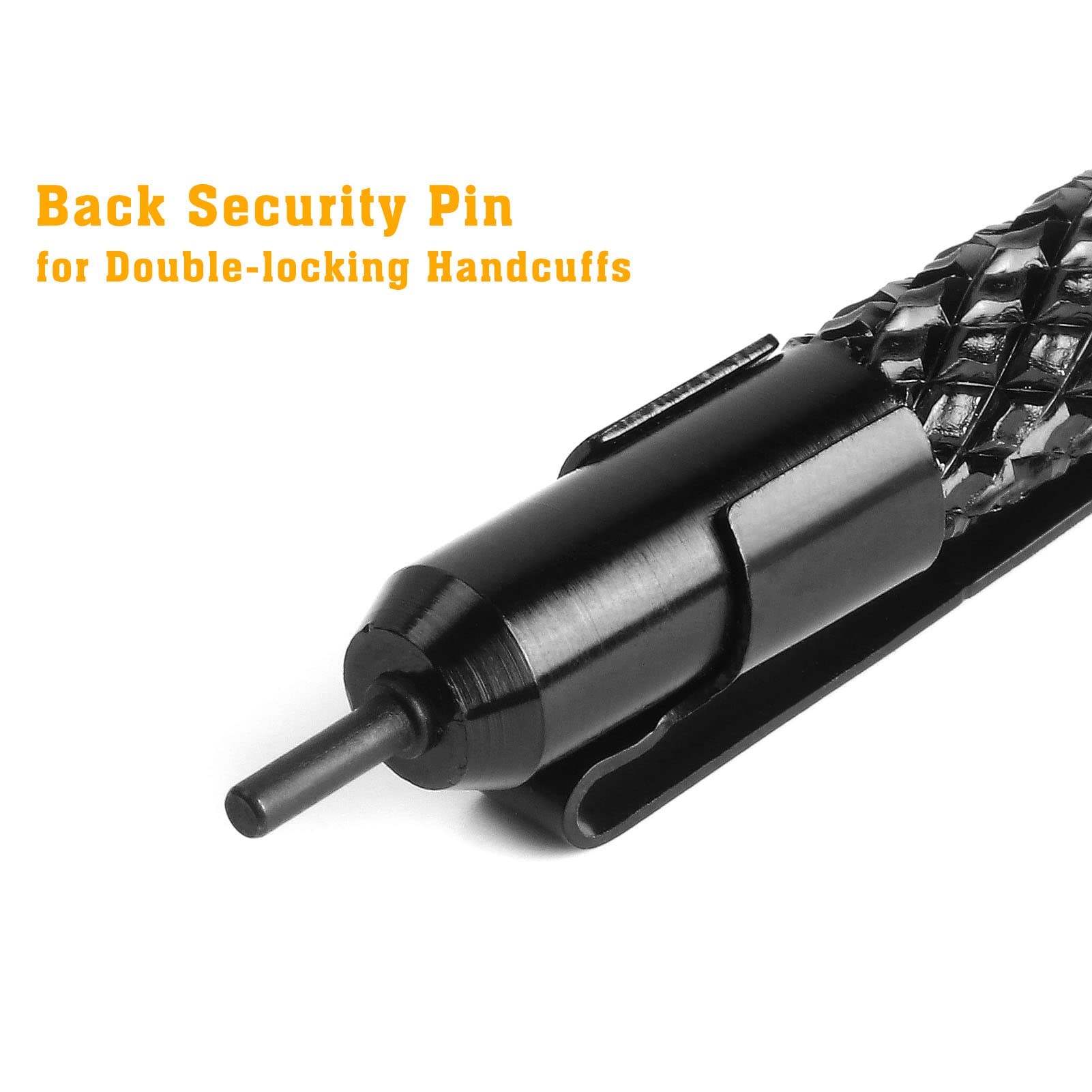 - Use stable hammer forging method, precision machined with strong rustproof aluminum material, durability increased by 100%, providing an unlimited period of service. And with security unlocking pin universal fits for double-locking hand cuffs. In case of an unwanted situation simply use the pin for unlocking.