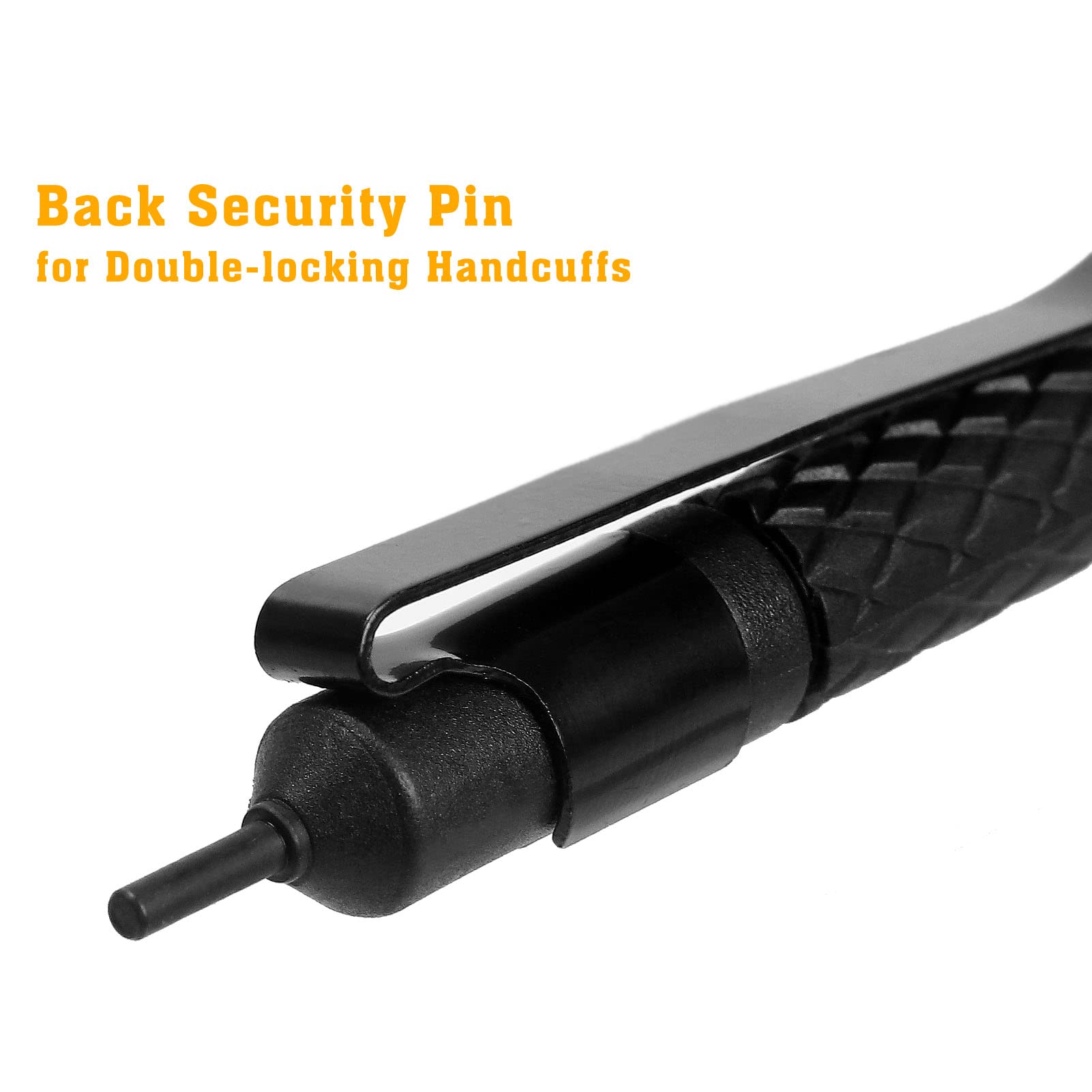 - Use stable forging method, made of light and strong polymer for durability. Subjected for 5000 times rigorous loss testing, ensuring maximum durability. And with security unlocking pin universal fits for double-locking hand cuffs. In case of an unwanted situation simply use the pin for unlocking.