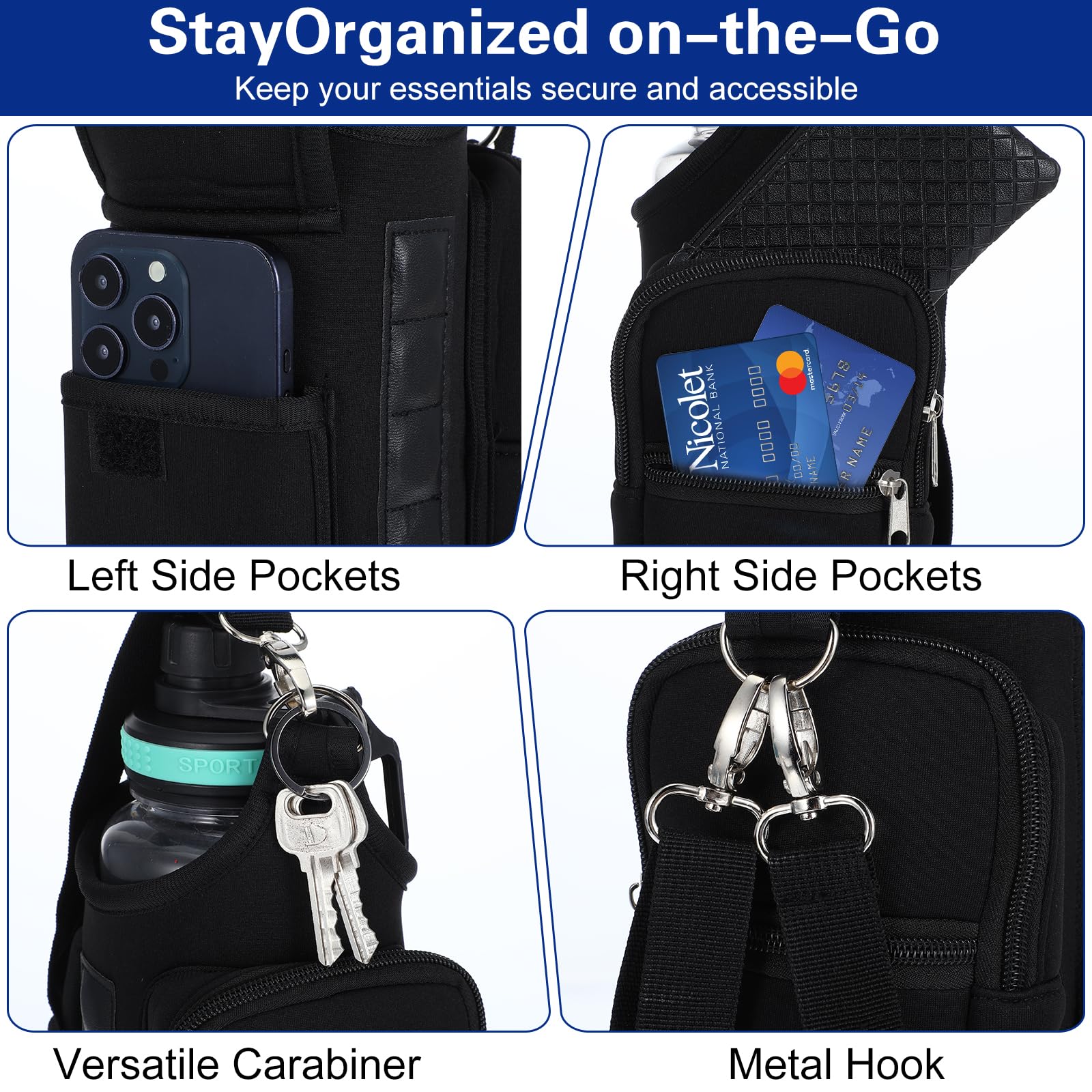 - Universal Fit & Practical: Designed to fit most standard water bottles from 18oz to 40oz,Crafted from soft neoprene,sturdy yet lightweight,this gym water bottle tumbler holder bag offers a reliable solution for gym-goers seeking convenience and functionality.