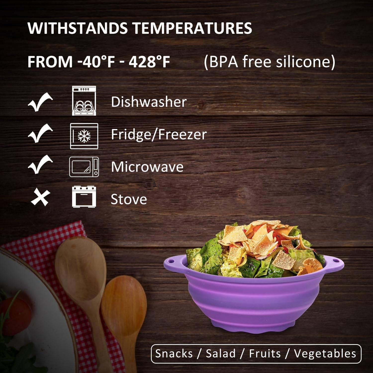 - Multifunctional: This silicone collapsible bowl is a universal type that can be used to put fruit; mix salad; and also for different kinds of outdoor activities, such as camping, hiking, cycling, picnics, etc