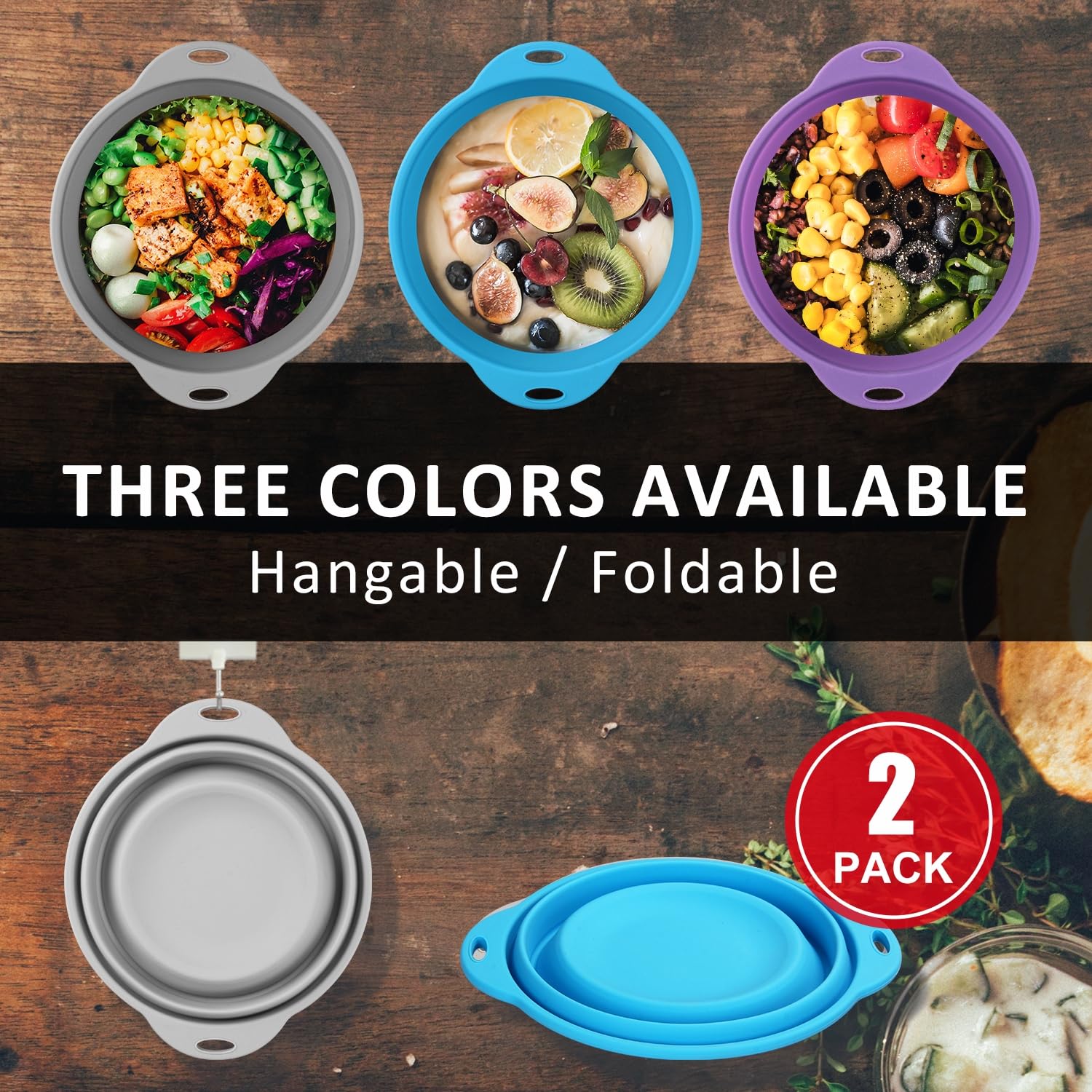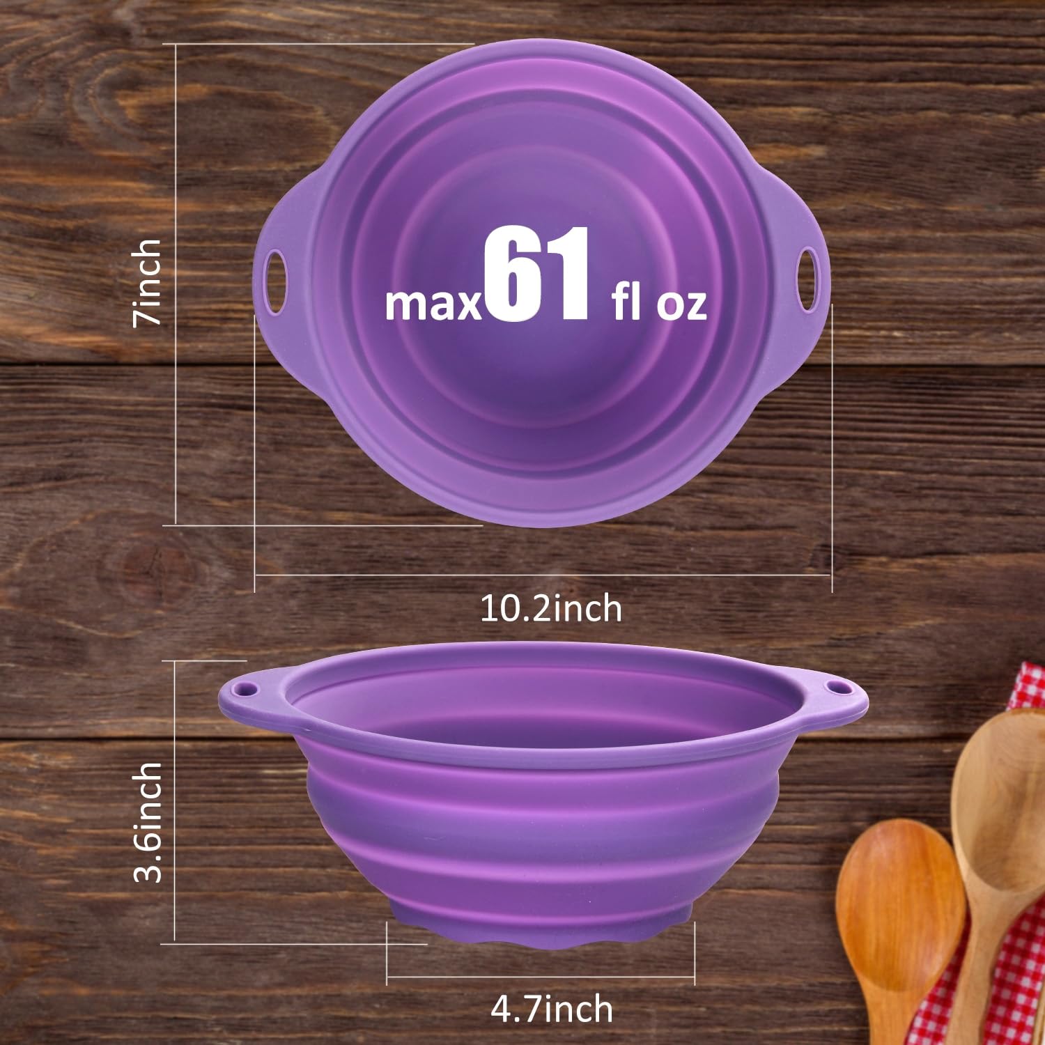 Jovilife Collapsible Mixing Bowl 2 Pack Camping Bowl Outdoor Hiking Travel 61 oz Collapsible Bowl for Storage and Mixing Food-Grade Silicone Food Storage Container(Purple)