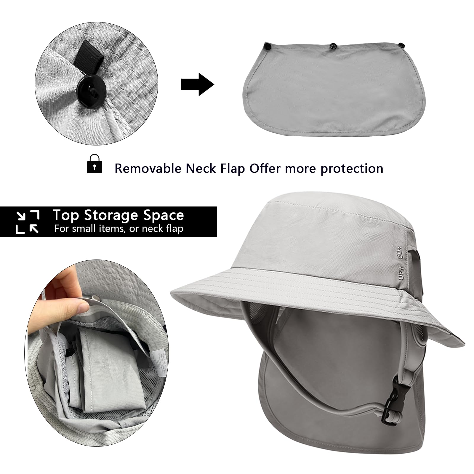- Removable neck flap: The hat comes with a removable neck flap that you can choose to wear or not according to your needs. In addition, the hat strap buckle design is sturdy, and the stitching is delicate, making the whole hat more beautiful and practical