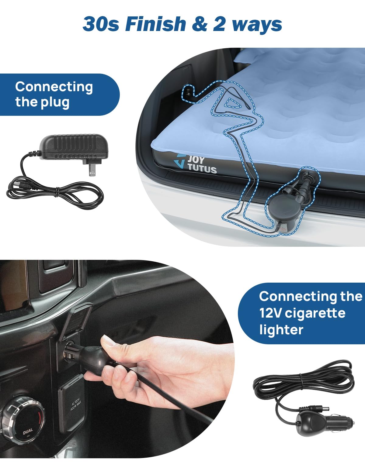 JOYTUTUS SUV Mattress for Car Camping, Upgraded Flocking and Extra Thick Oxford Surface SUV Air Mattress,Camping Bed Mattress with 2-in-1 Air Pump, 2 Pillows & Carry Bag (Blue)
