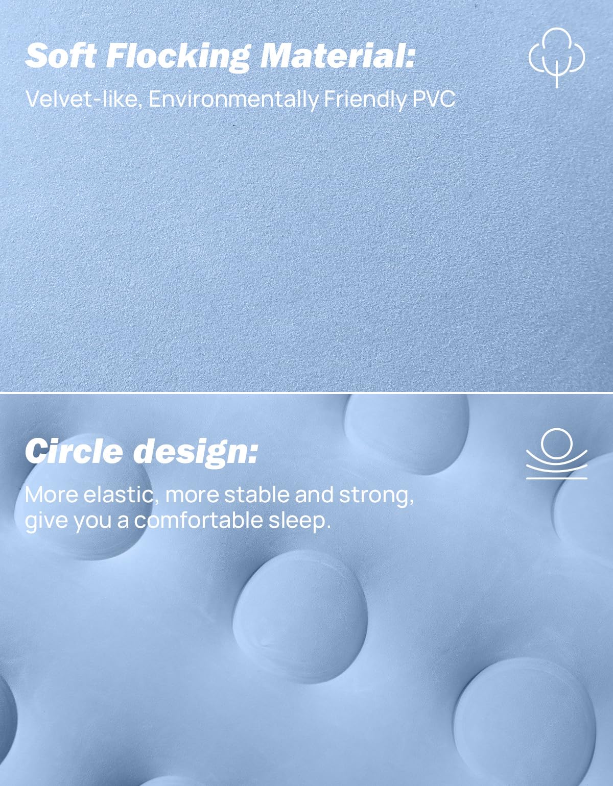 - 【Thicker Fabric】: Our thickened air cushion enhances stability and comfort, easily supporting the weight of two adults. The surface and pillows are crafted from soft, velvet-like flocking fabric, providing a luxurious, cushy feel for a restful experience.