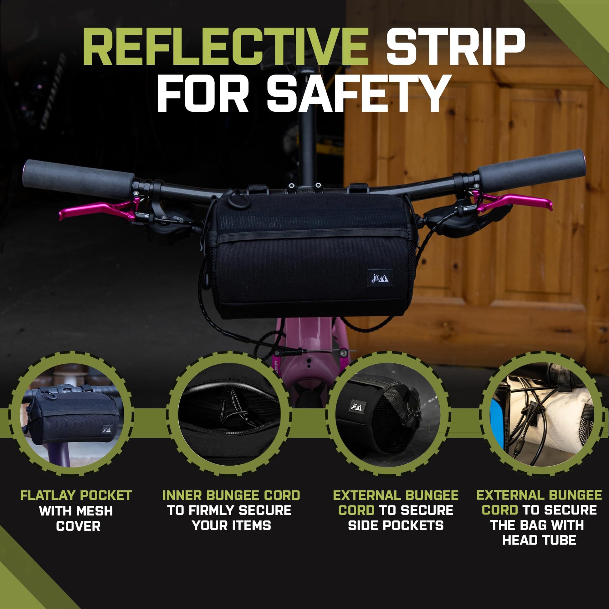 - Increased road safety – Make your bike rides safer with the JRC printed reflective strip which makes the small handlebar bag easy to spot in low natural light, allowing you to bike safely at night