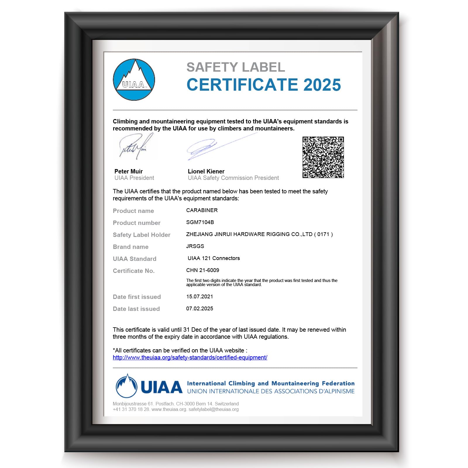 - REMINDER: For carabiners certified by UIAA, please look for the JRSGS brand. We will give you a 100% satisfactory answer to any product quality problems. Just contact us, and our service is always online.