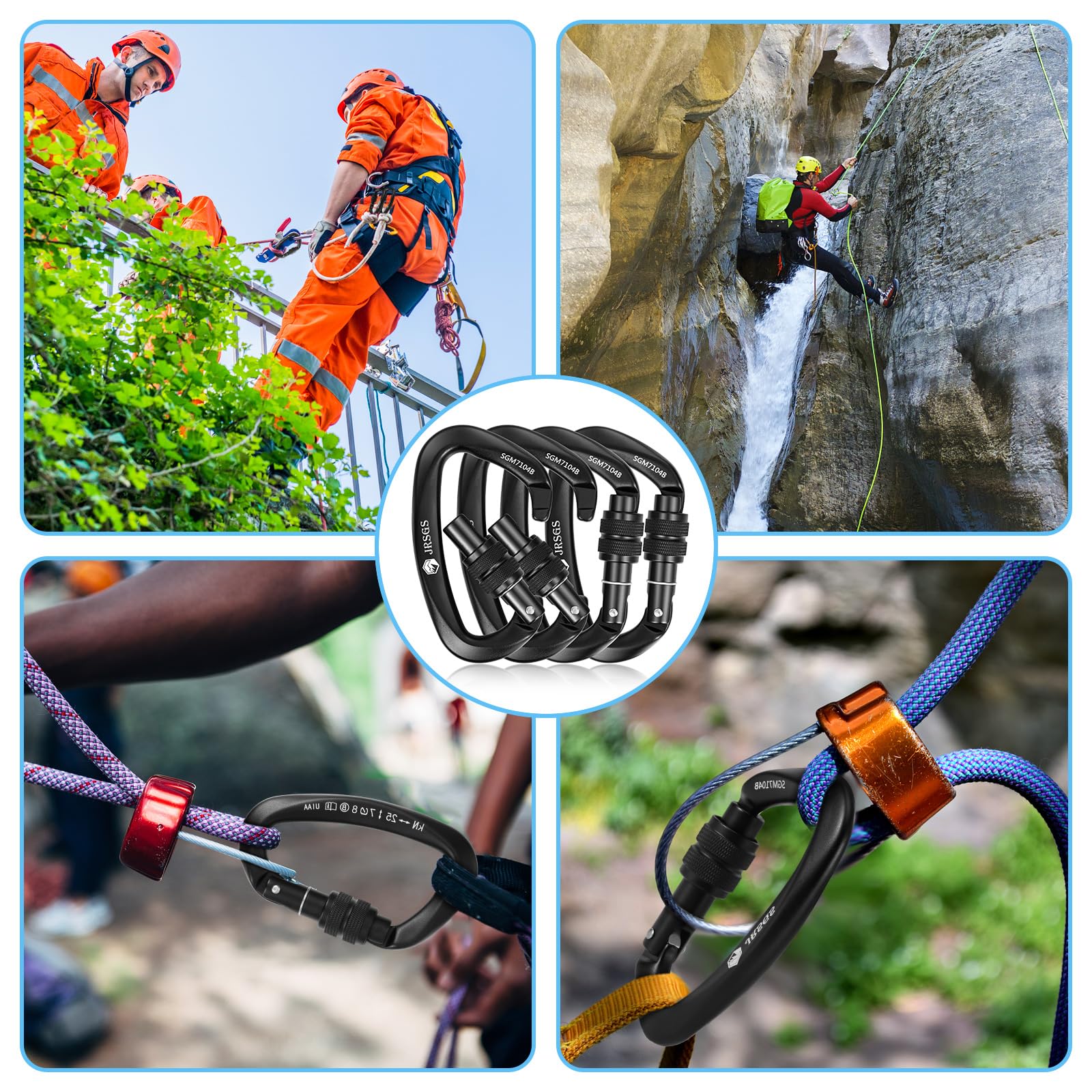 JRSGS 25KN Locking Climbing Carabiner Clips, UlAA Certified Rockclimbing Carabiner,Heavy Duty Carabiners Equipment,Large SizeCarabiner for Climbing, Rappelling,Hunting and Rescue