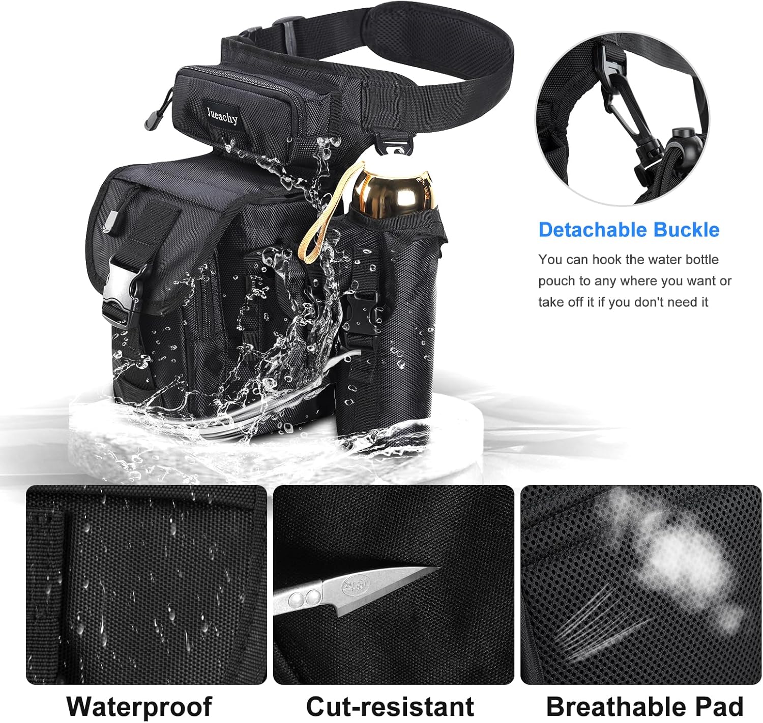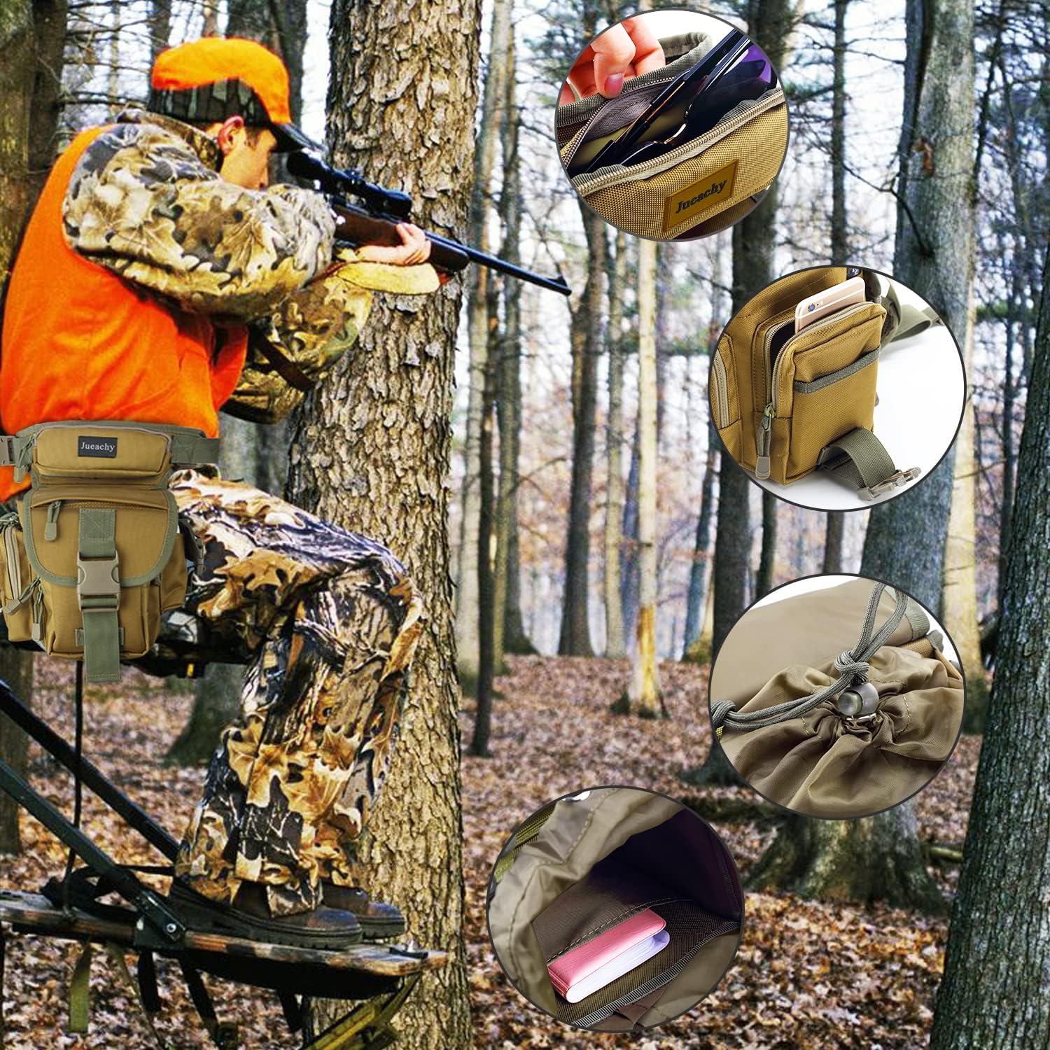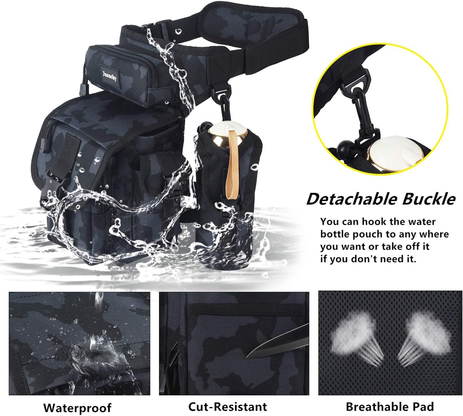 Jueachy Drop Leg Bag for Men Tactical Metal Detecting Thigh Pack with Water Bottle Pouch