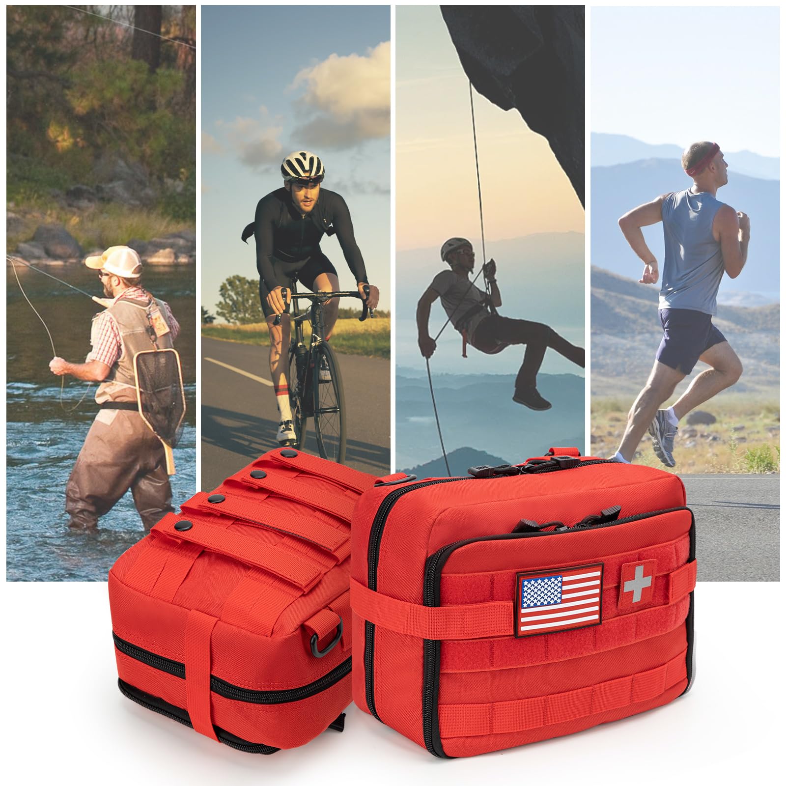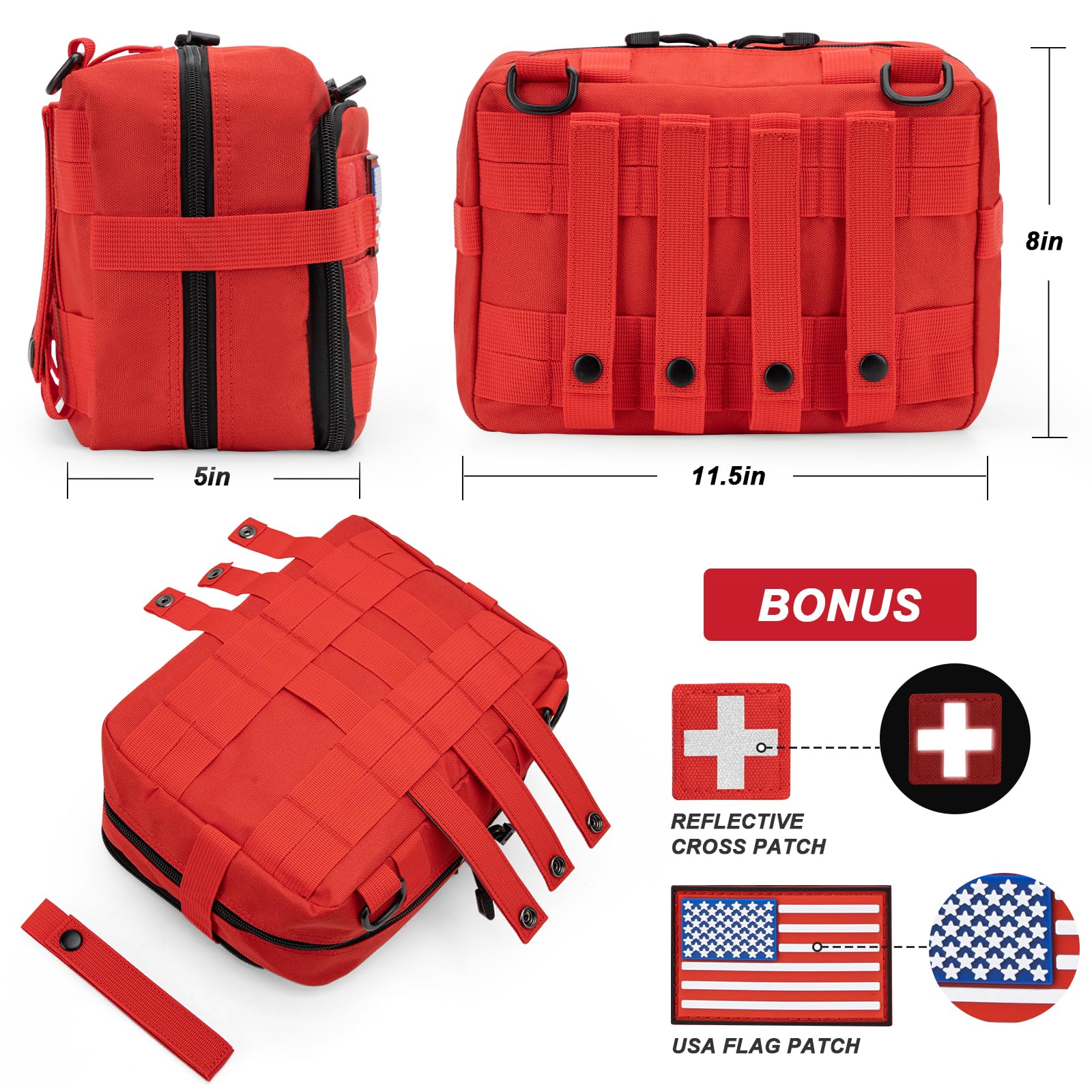 Jueachy First Aid Pouch - Molle Tactical Medical IFAK EMT Pouch - Large Capacity - Includes Flag & Cross Patch - Red