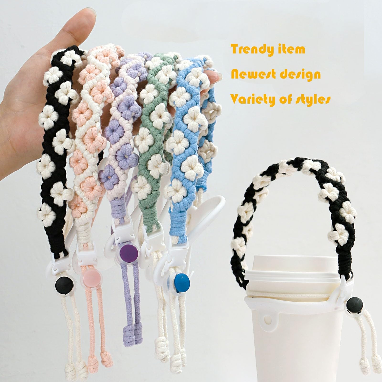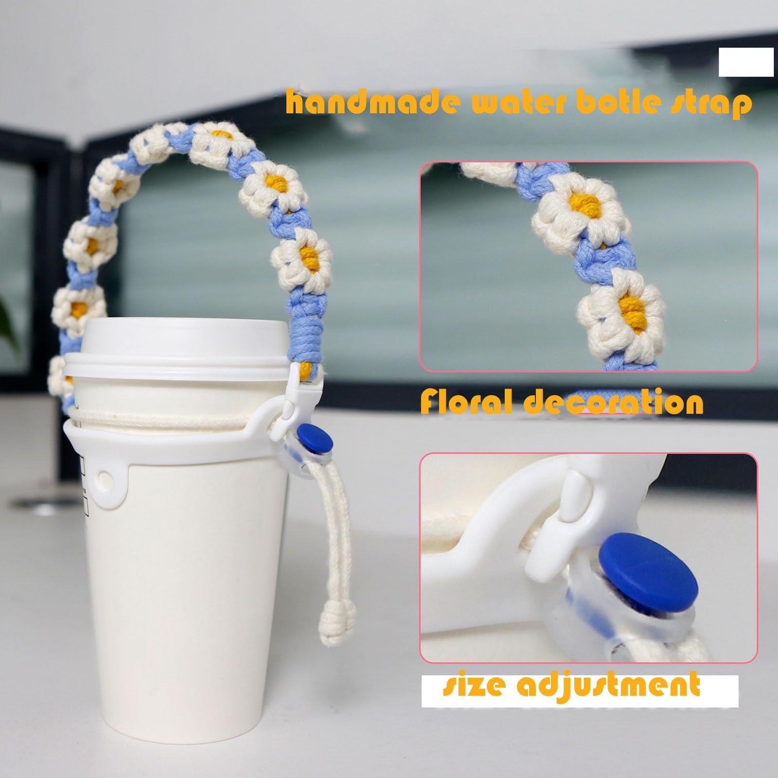 - Handwoven Design: This water bottle holder strap features a woven floral design. The handles are hand-woven into flowers from cotton threads of different colors. The flowers are vivid, fresh, beautiful and creative. and various color options, A nice gift for your friends, family, lovers on all kinds of important festivals. It can also be used to reward yourself.