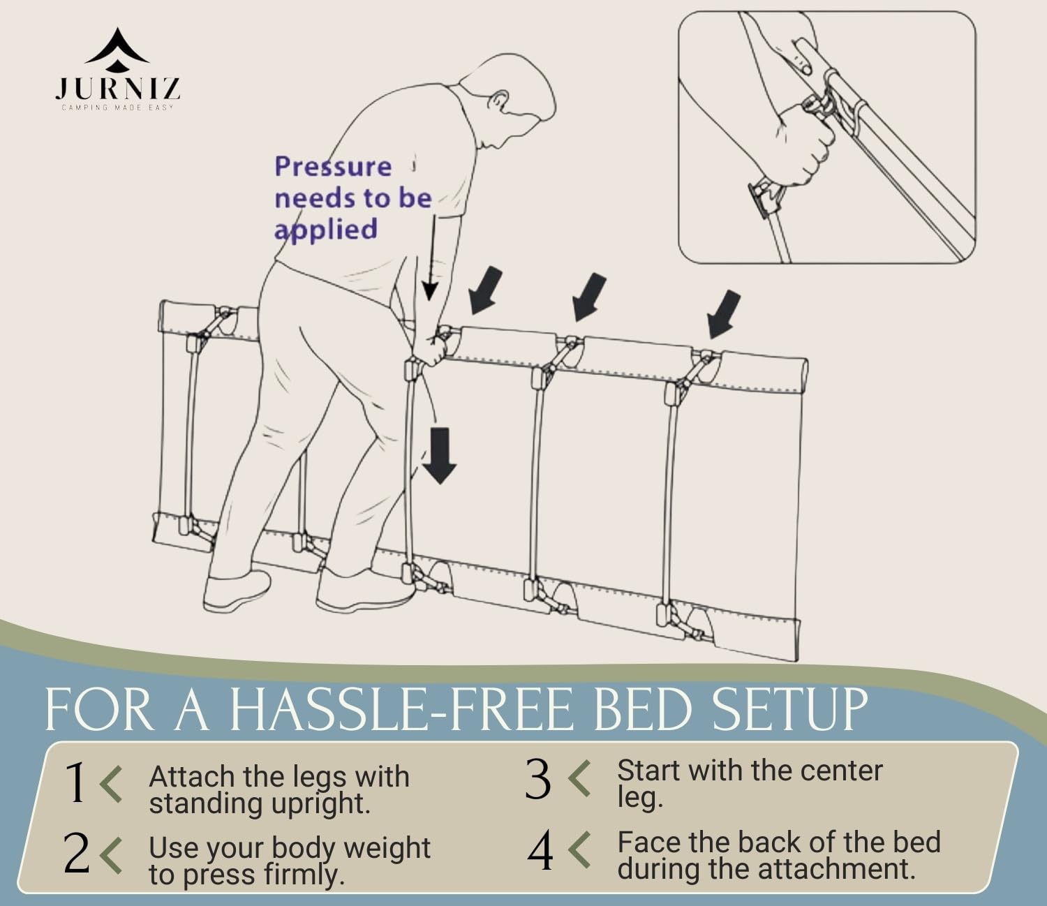 - đď¸ TAKING YOUR FAMILY CAMPING? Add comfort to your packing list. Load a JURNIZ camping bed for everyone. Feel the difference as you sleep above rather than on the ground. Stretch out on this elevated cot and enjoy a cozy night sleeping in nature, with soft breezes, water rippling in the nearby river, and fresh scents of the forest.